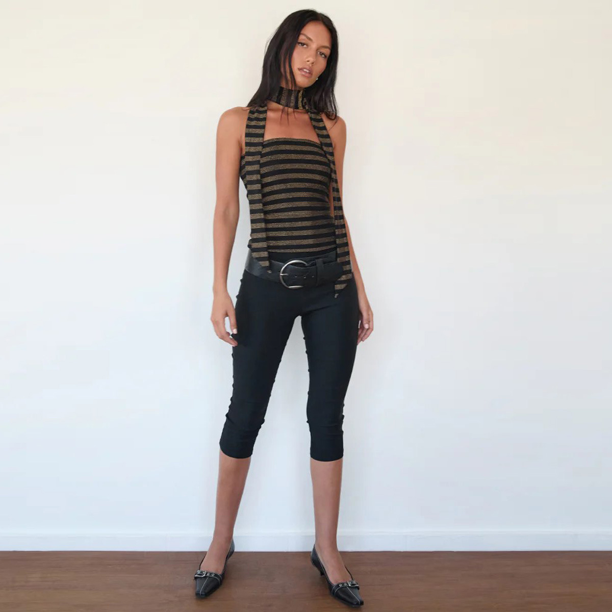 Strappy Back-revealing Cropped Top With A Tie-neck Design