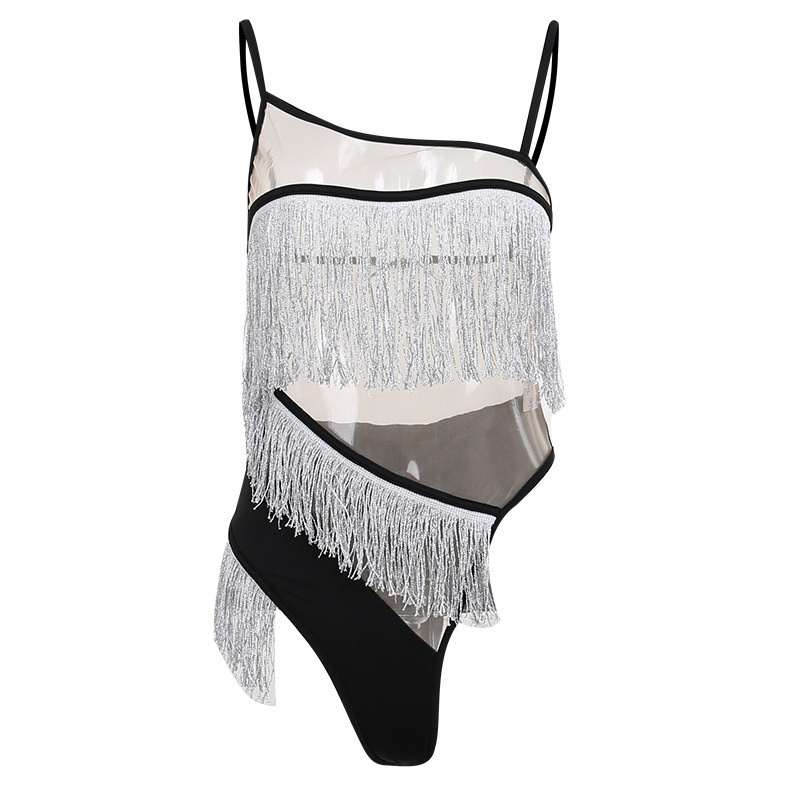 Straps Tulle Tassel Women's Hollow-out Tight Jumpsuit