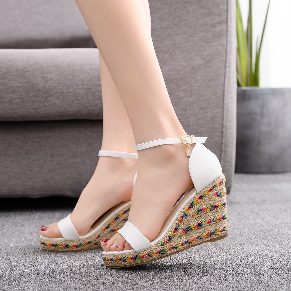 Popular elements: Hollow, buckle, shallow mouth, chain, wedge heel, waterproof platform, belt buckle, Roman style