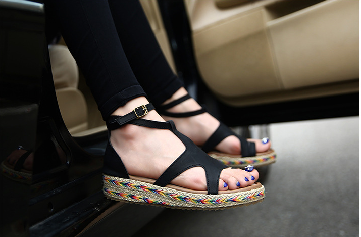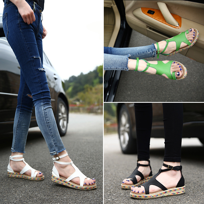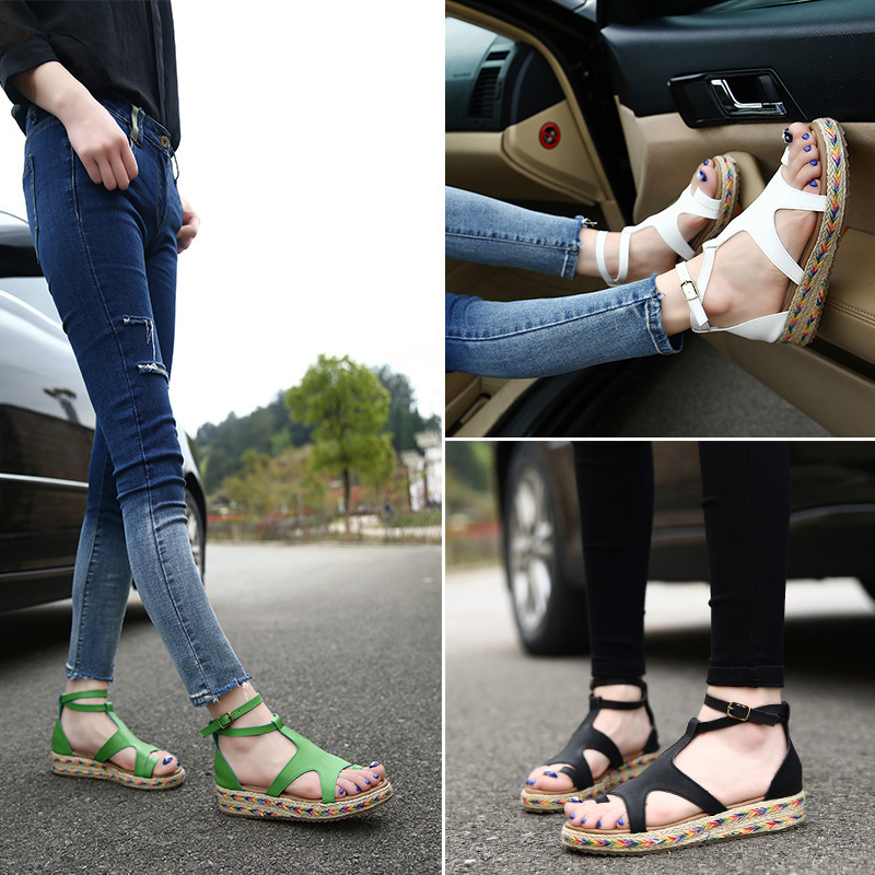 Straw fisherman shoes flat with flip feet beach shoes Roman women's shoes