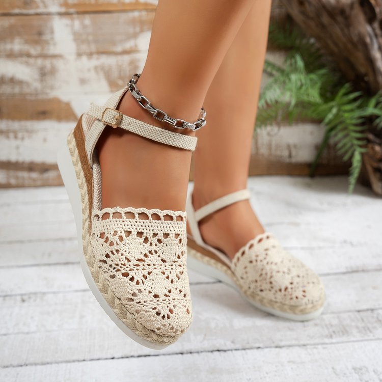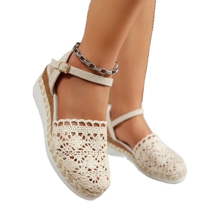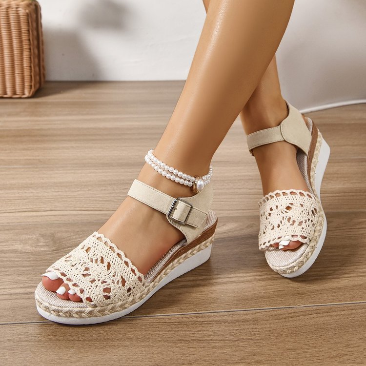 Straw-woven Wedge Sandals Womens Summer Platform Thick-soled Waterproof High Heels