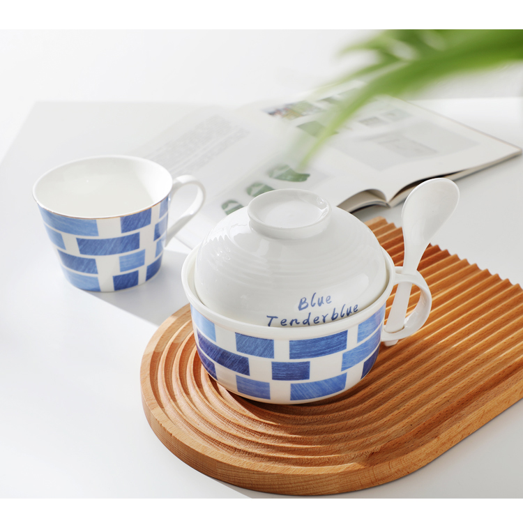 Strawberry Instant Noodle Bowl With Lid Ceramic Warming Tableware