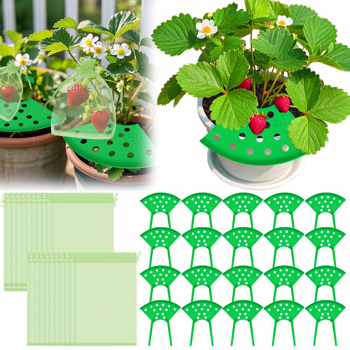 Strawberry Planting Kit, Includes 8 Strawberry Support Racks And 20 Green Mesh Fruit Bags, With 2 Sturdy Leg Frames, Suitable For Garden Pot Planting, Keeps Insects, Birds, And Squirrels Away, And Kee