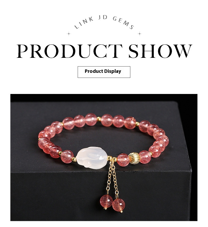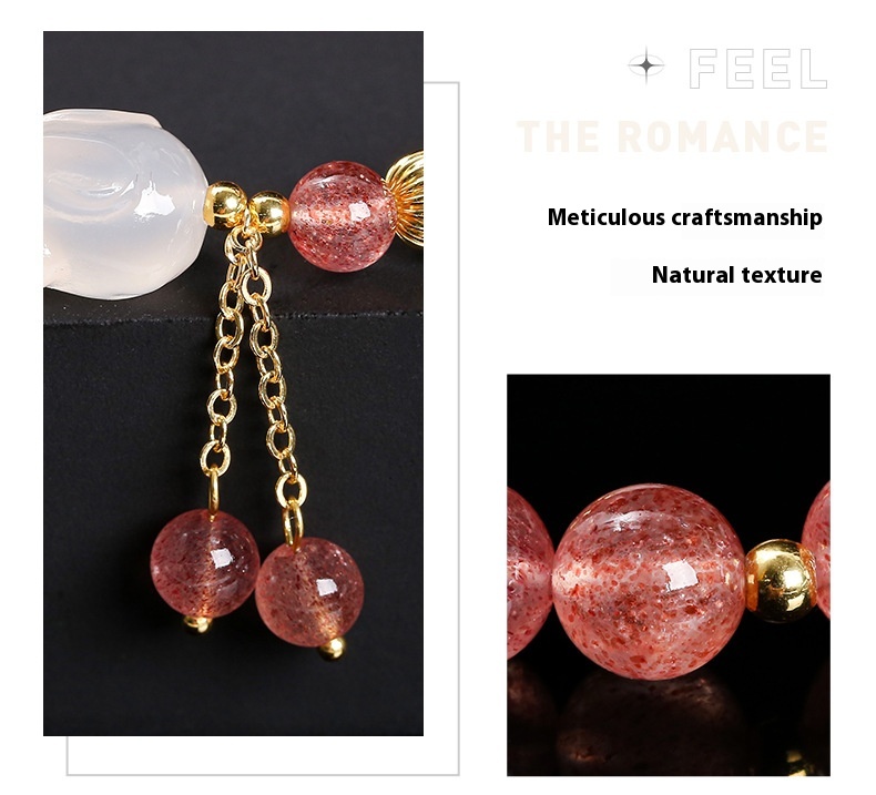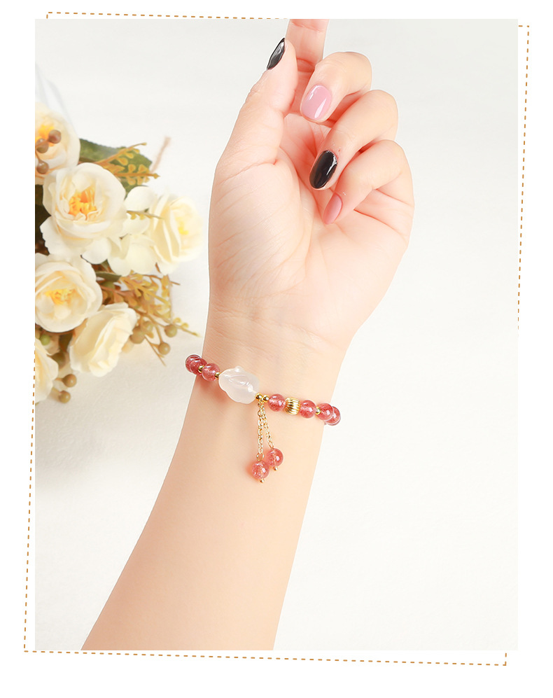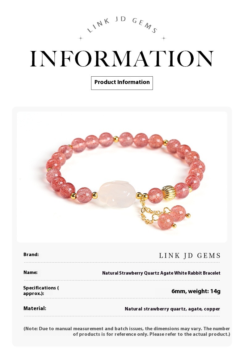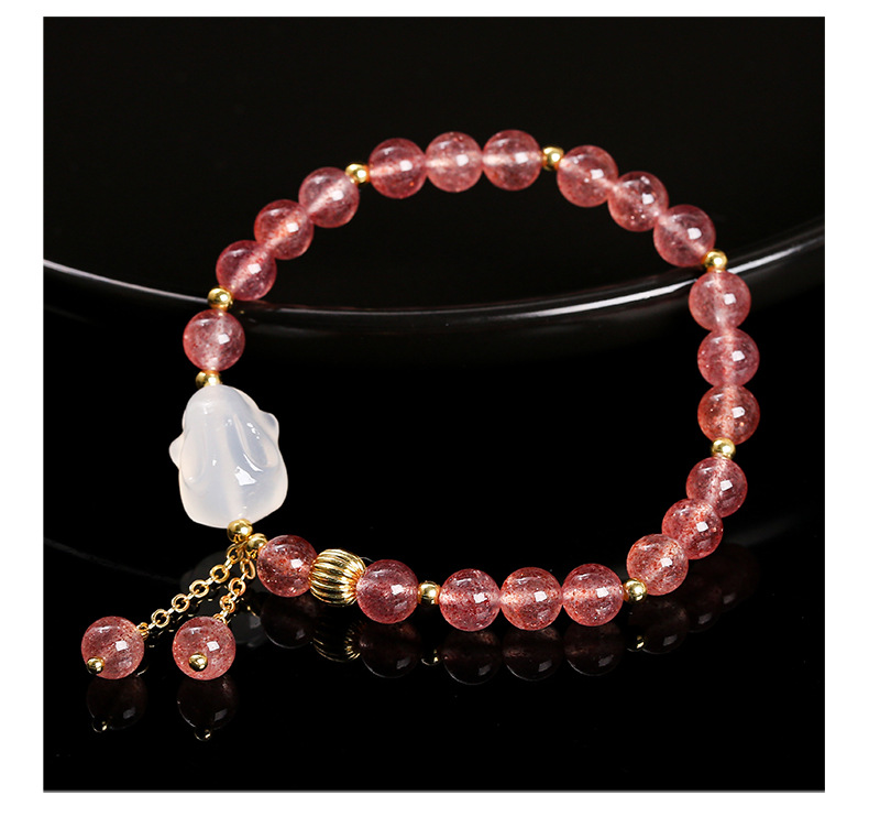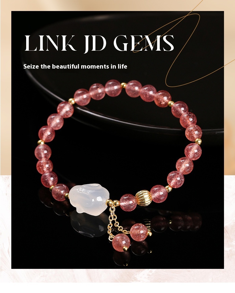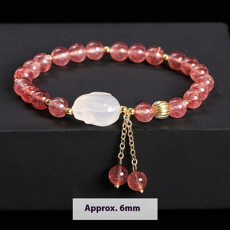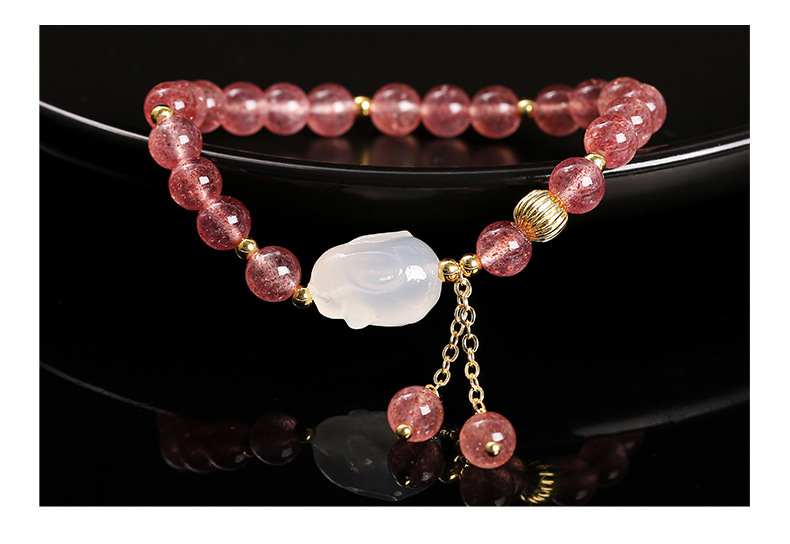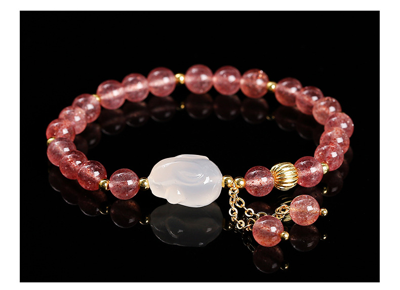 Color: 5A natural strawberry quartz agate White Rabbit bracelet