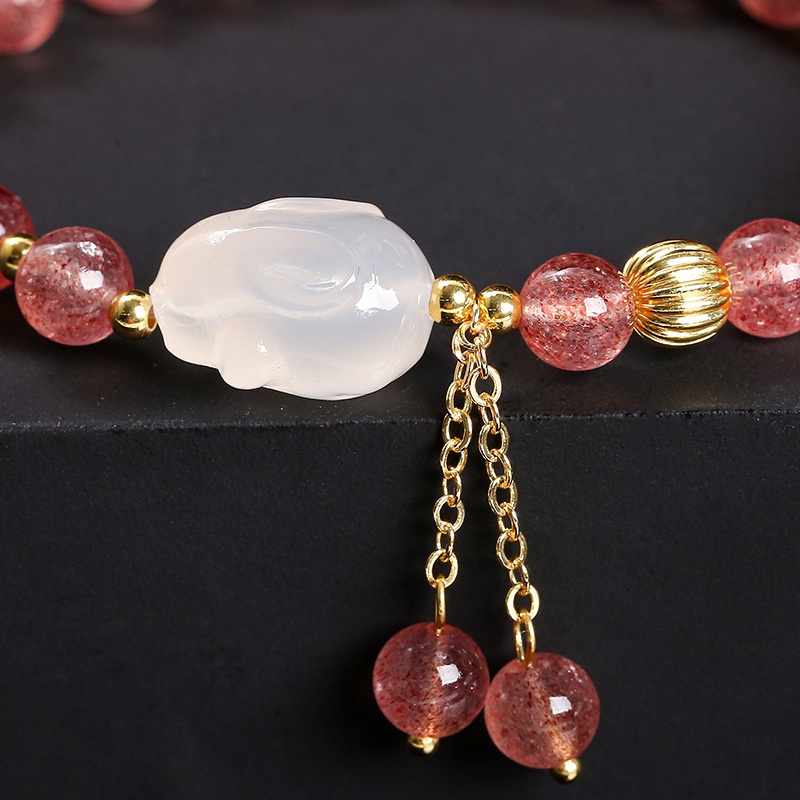 Strawberry Quartz Agate White Rabbit Bracelet