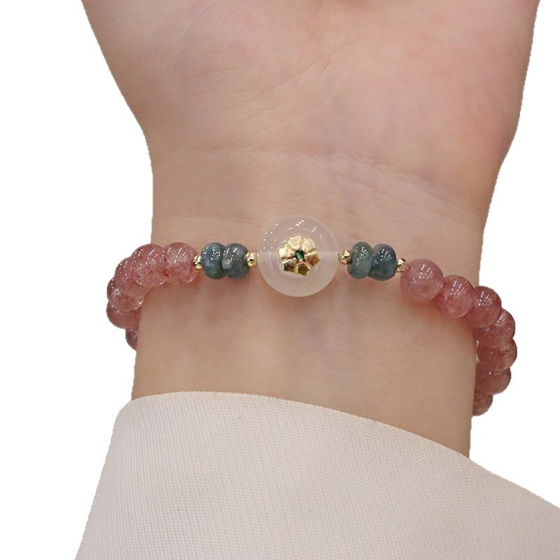 Color: natural stone strawberry quartz blue water Emerald round jade pendant bracelet