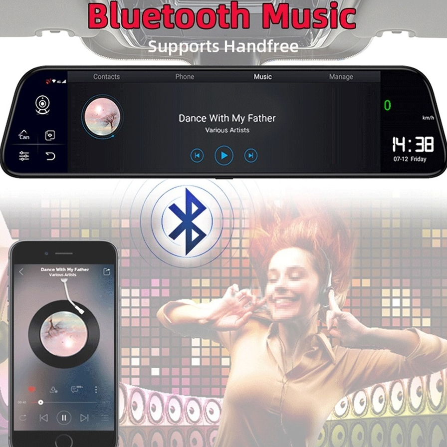 8. Bluetooth handsfree and files transfer , you could transfer the music files from the smartphone to the car dvr after bluetooth pairing.