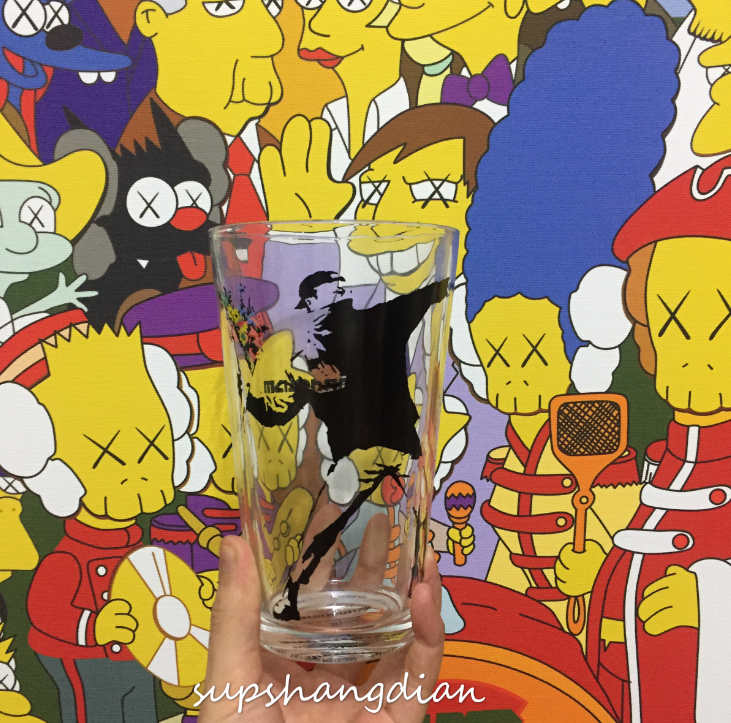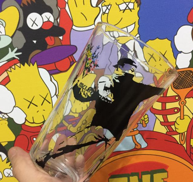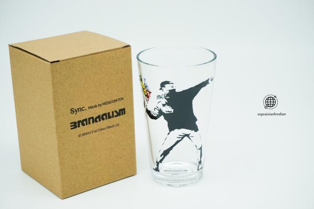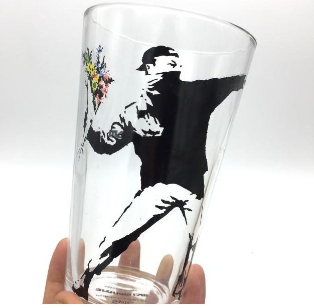 Banksy throwing flower boys street art industrial glass glass beer mug