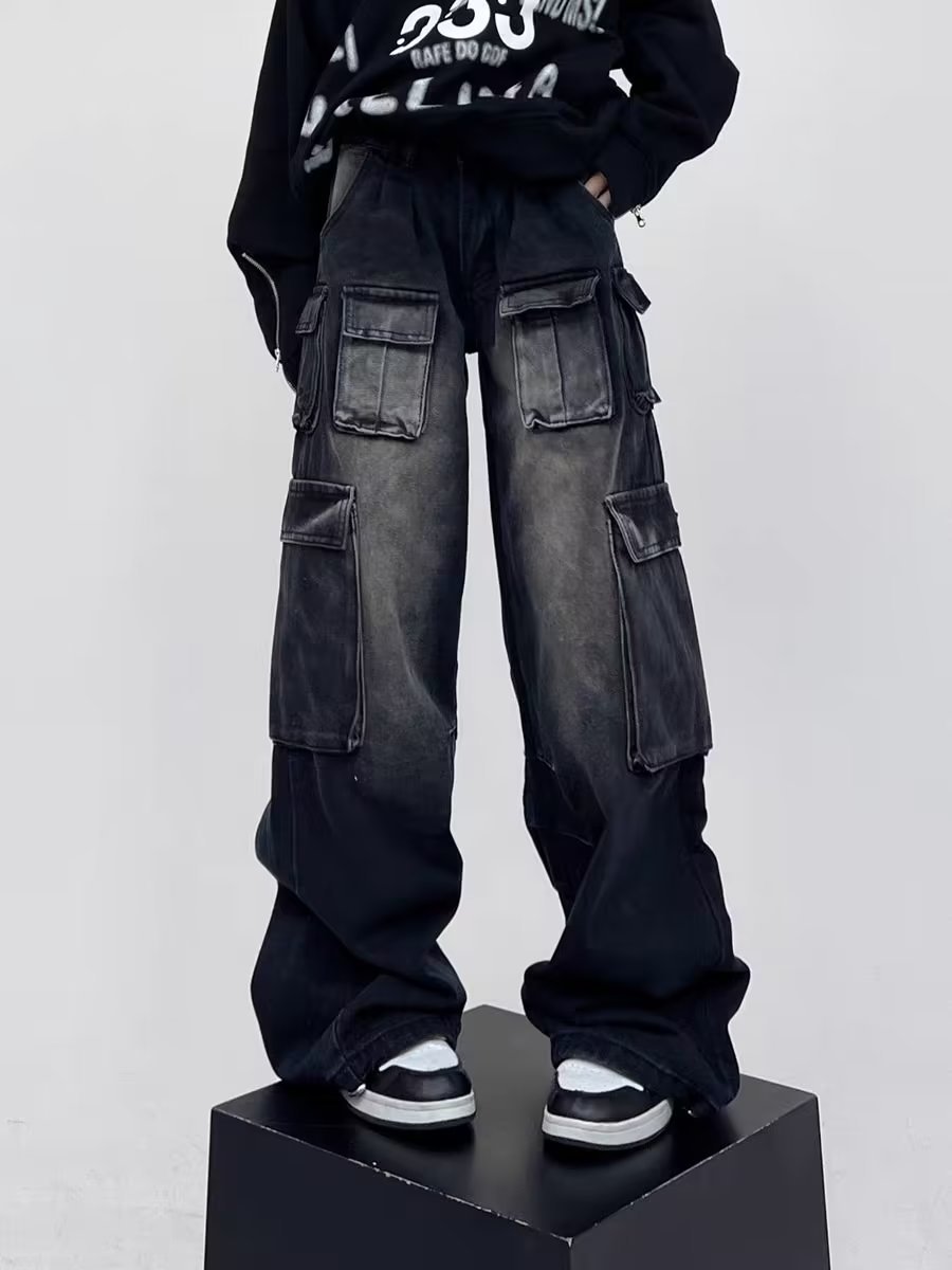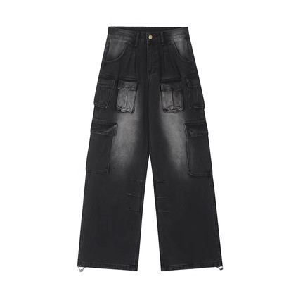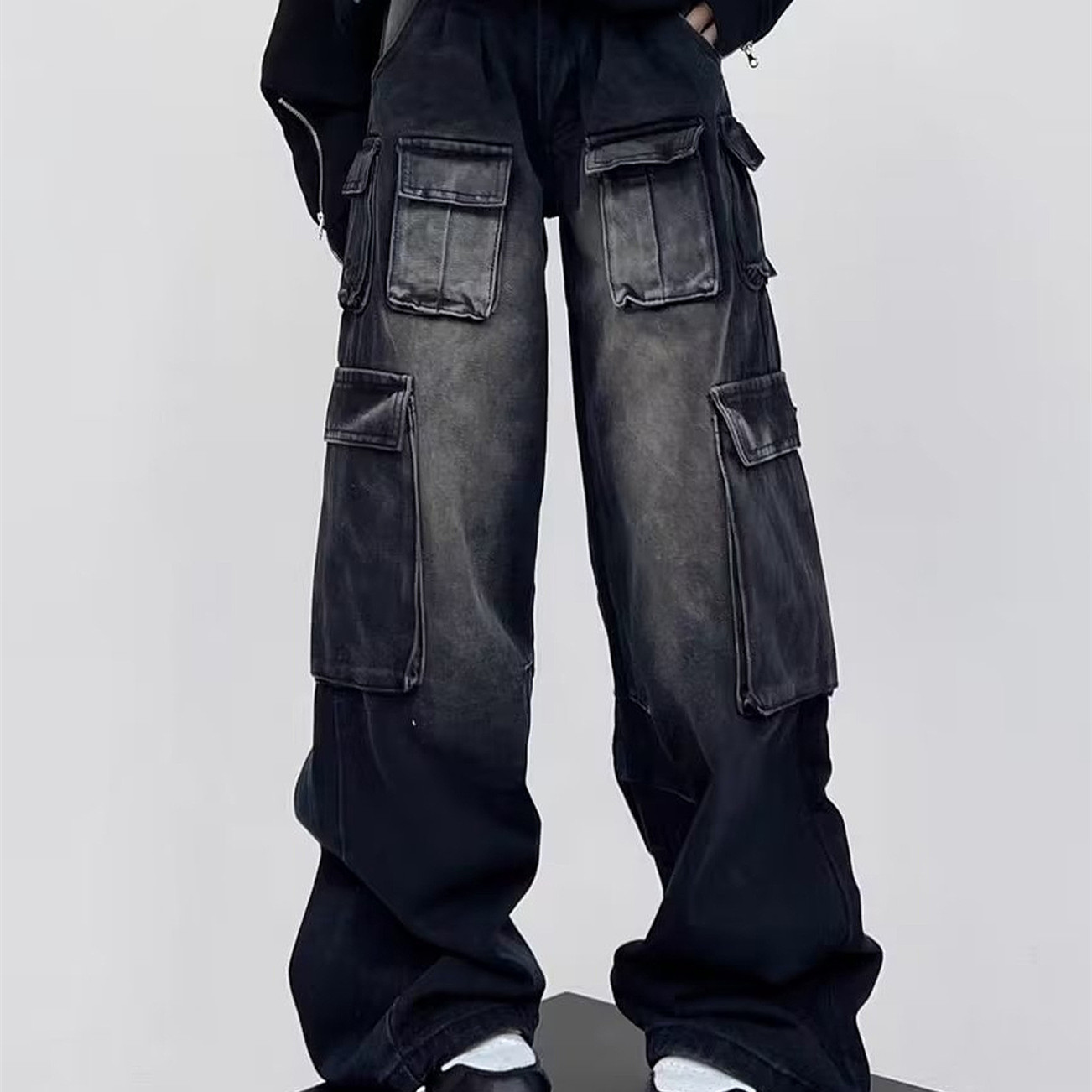 Street Design Wide-leg Workwear Trousers Men's And Women's Loose Straight Washed Retro Jeans