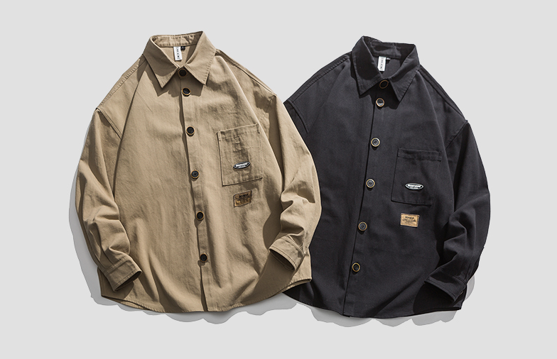 Street Loose All-match Thin Retro Tooling Long-sleeved Shirt
