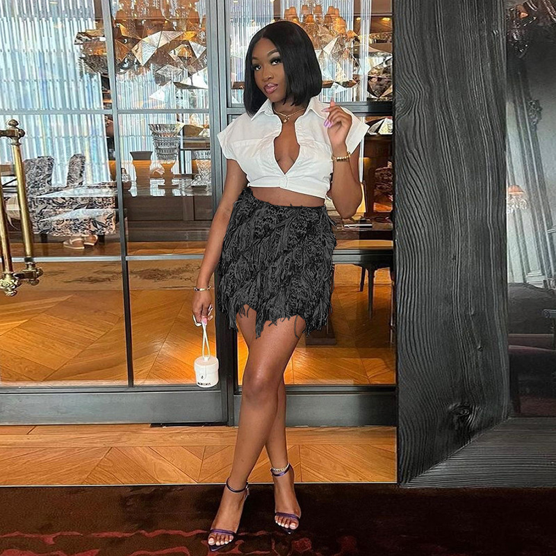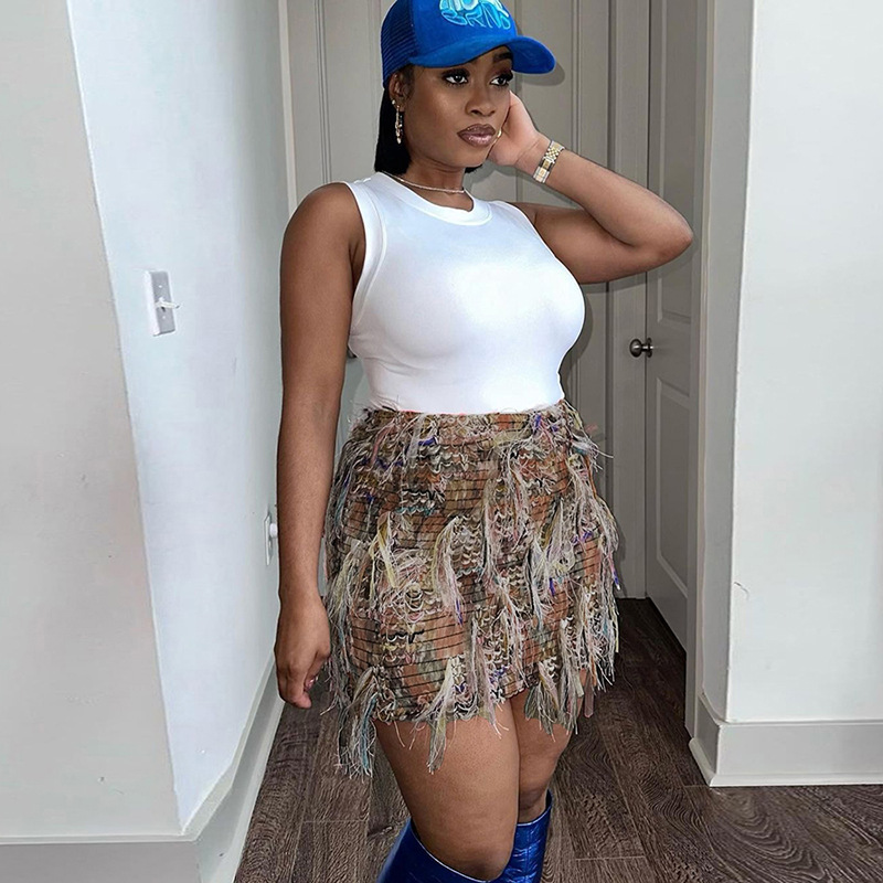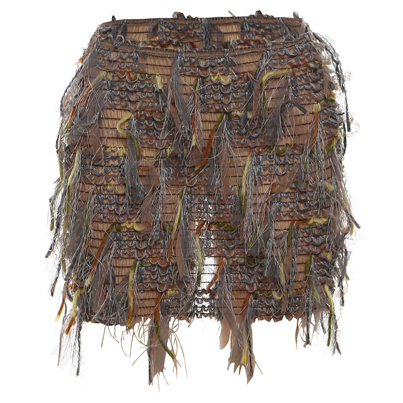 Street Trend Creative Stripes Tassel High Waist Slim Fit Skirt Women
