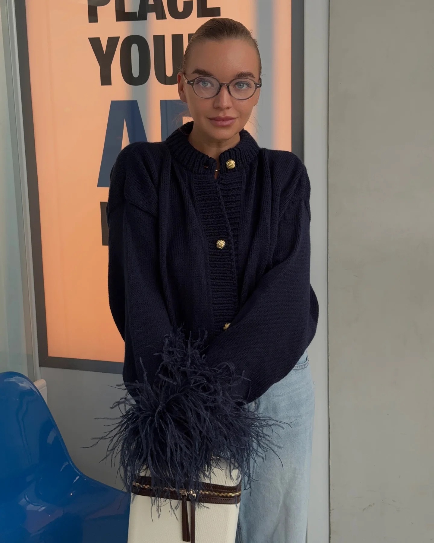 Colors: Dark blue, coffee brown