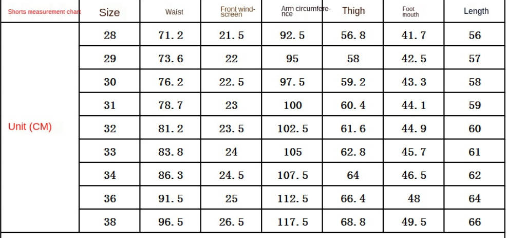 Sizes: 28, 29, 30, 31, 32, 33, 34, 36, 38