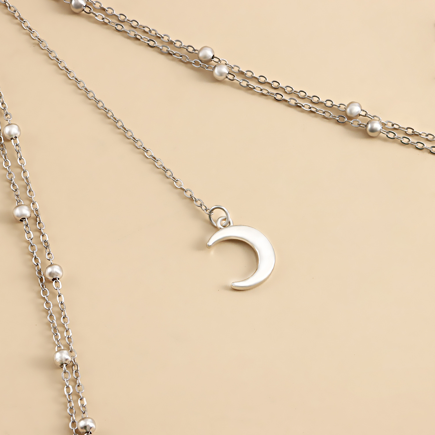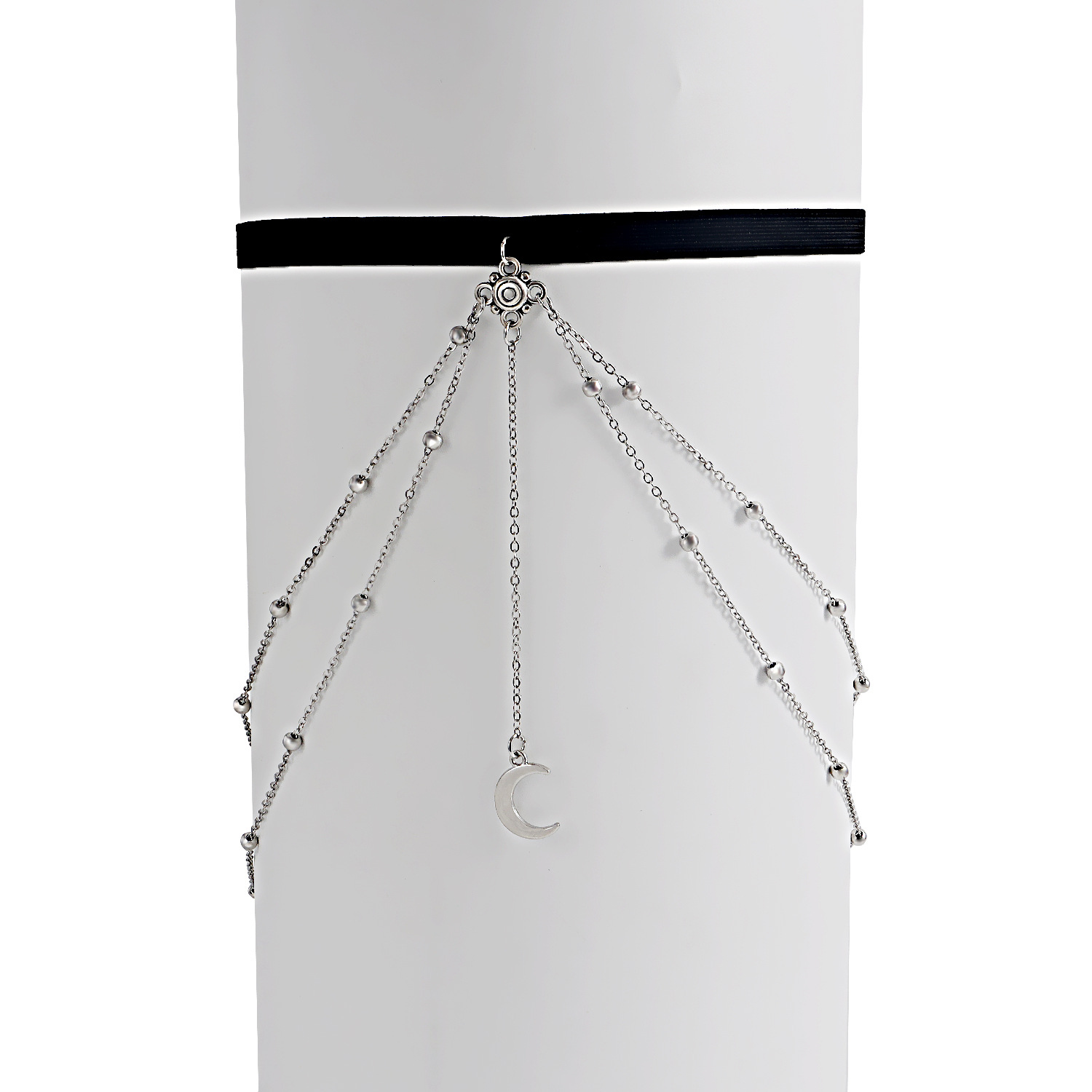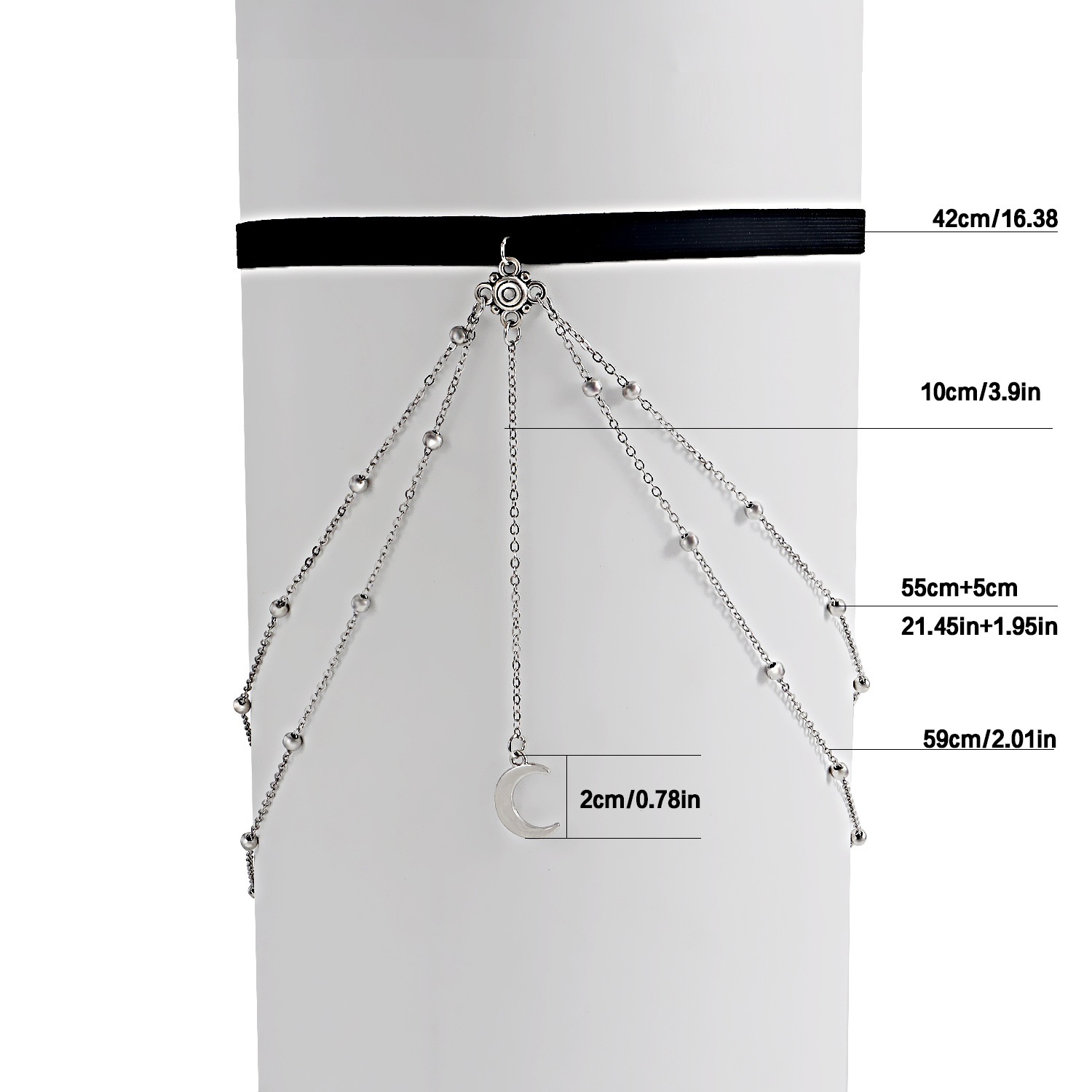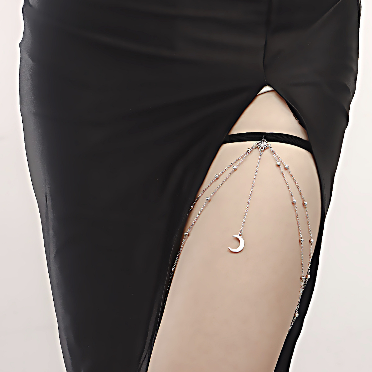 Stretch Double Layer Ball Crescent Pendant Tassel Thigh Chain
