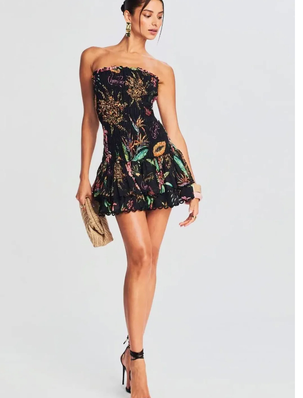 Stretchy Waist-cinching Ruffled Mini Dress That Flatters The
