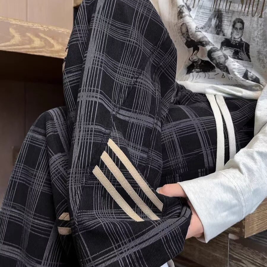 Striped And Plaid Patchwork Versatile Minimalist Straight-leg Wide-leg Sweatpants
