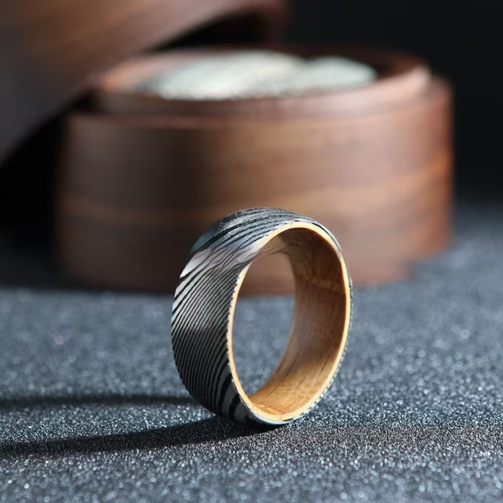 Striped Barrel Wood Inner Ring Men Women's Jewelry