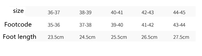Size: 36-37 (suitable for 35-36), 38-39 (suitable for 37-38), 40-41 (suitable for 39-40), 42-43 (suitable for 41-42), 44-45 (suitable for 43-44) )