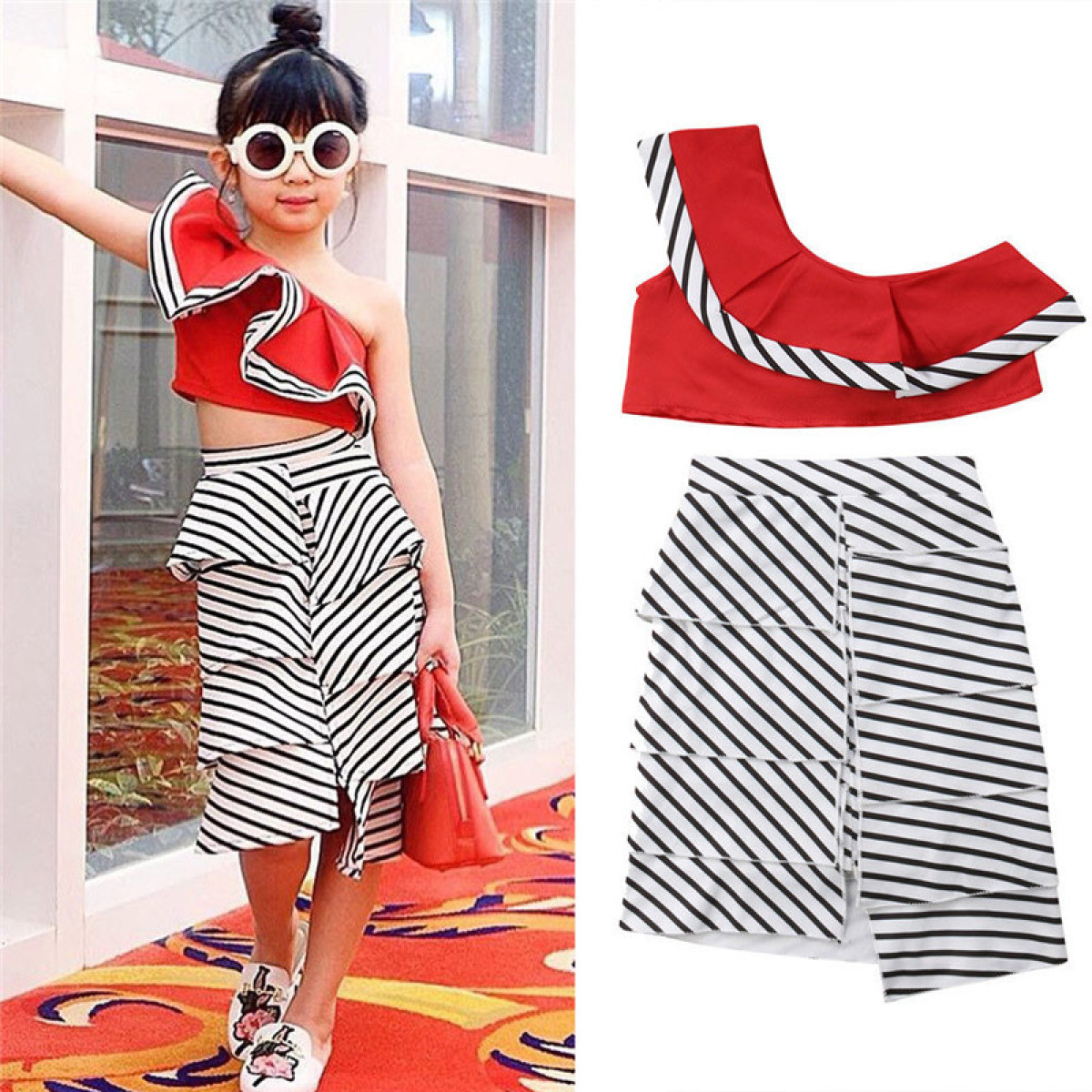Striped cake skirt suit