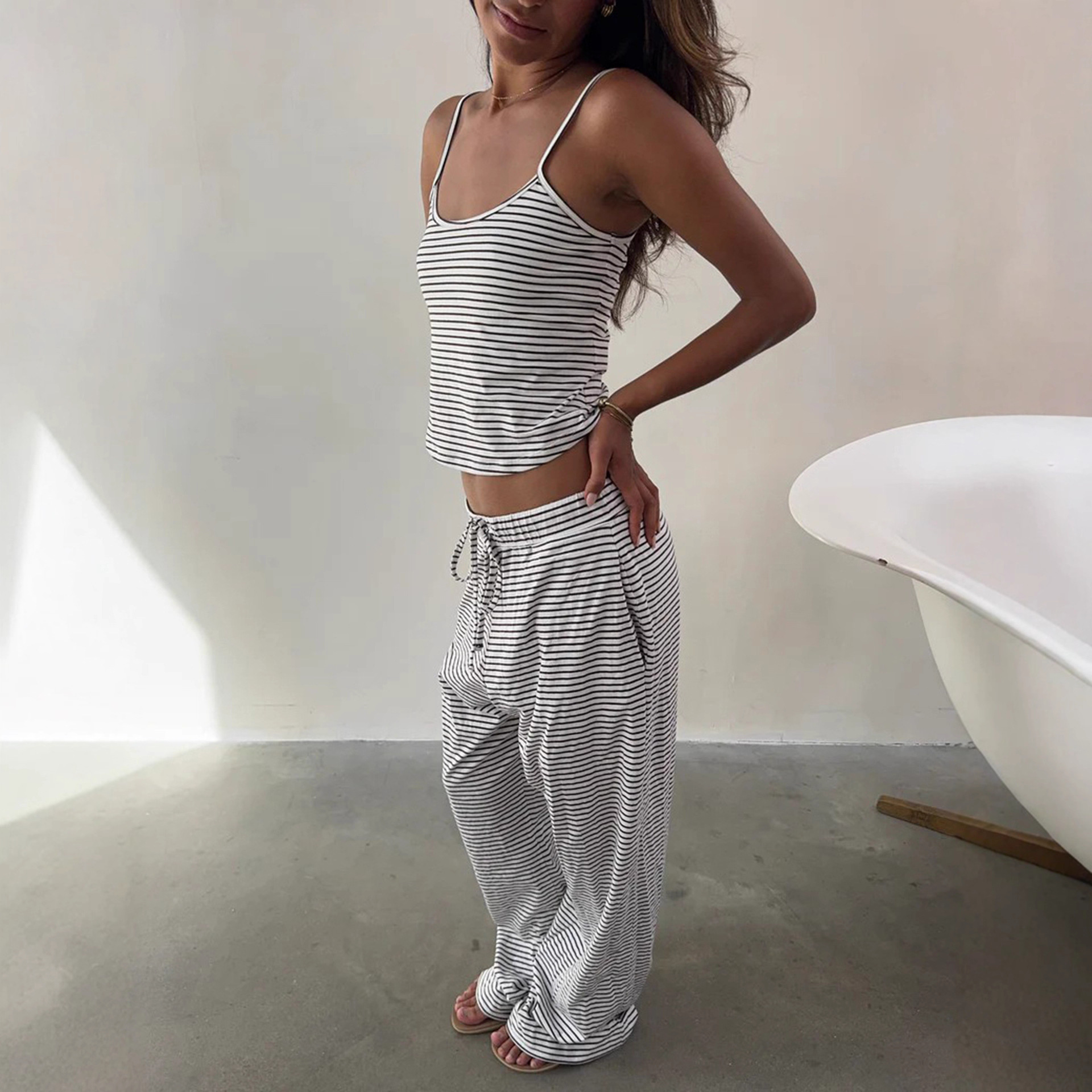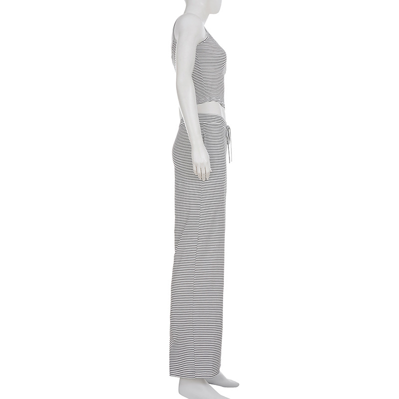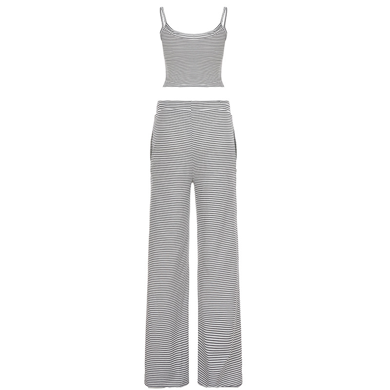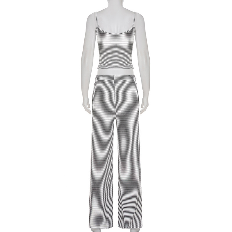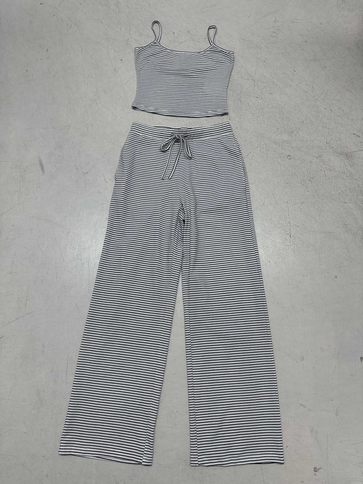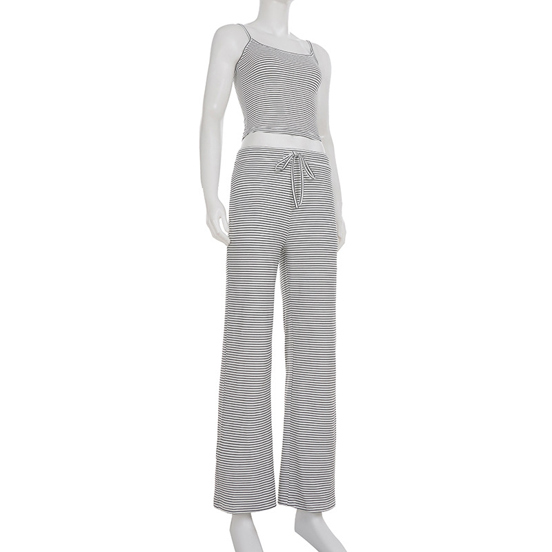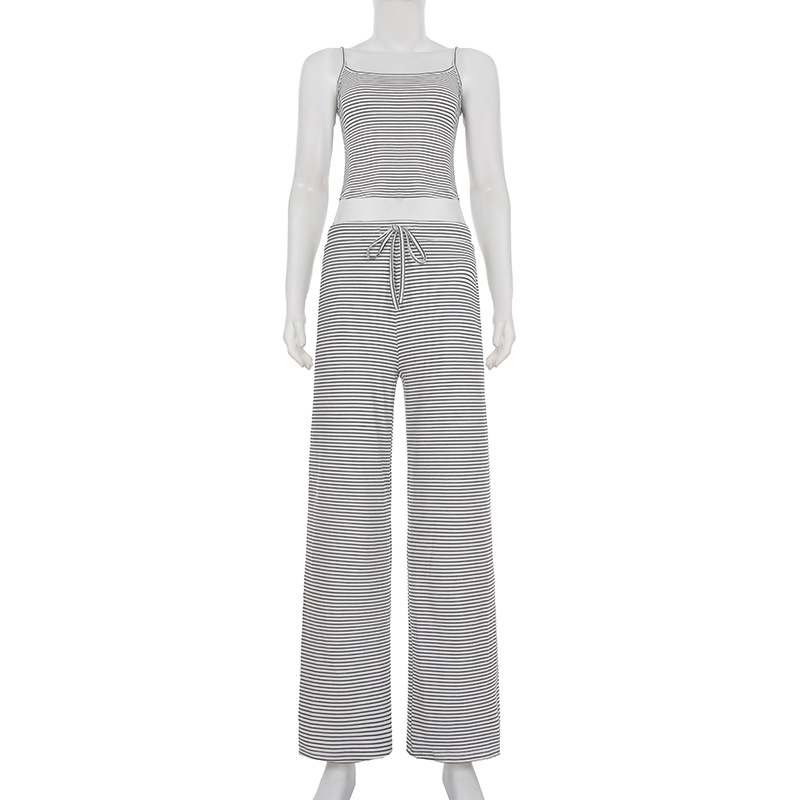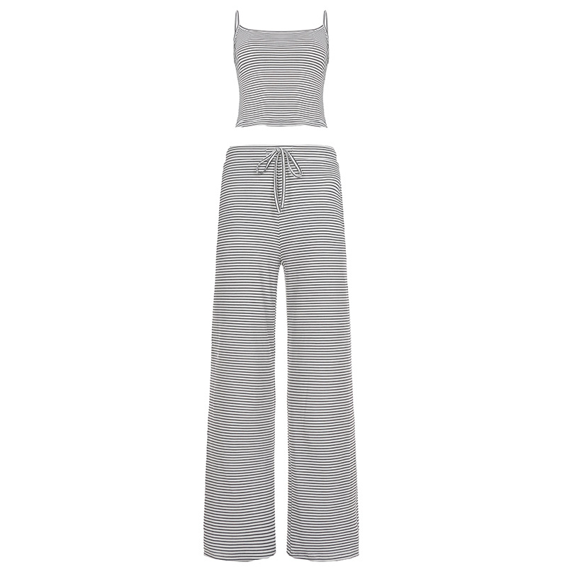Striped Camisole Top And Elastic-waist Pants Loungewearpajama Two-piece Set