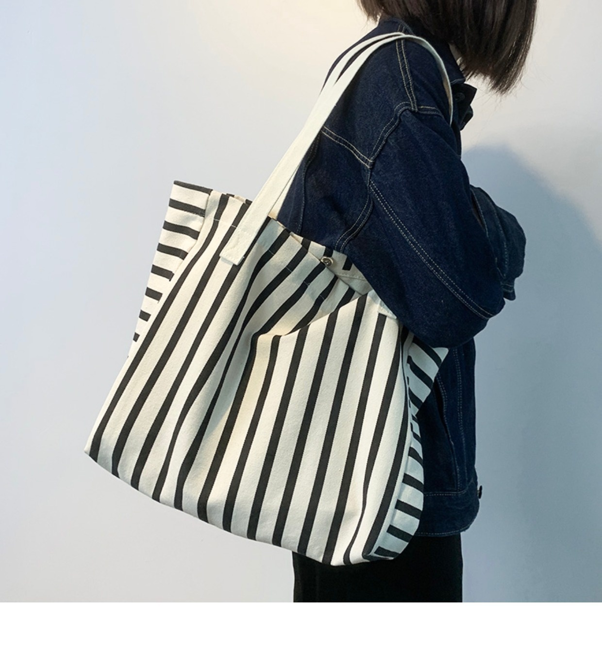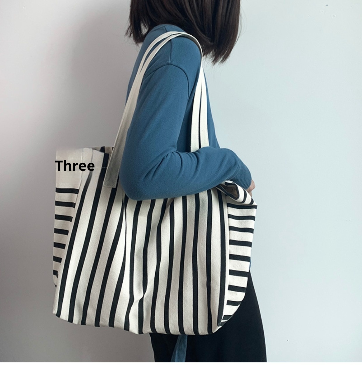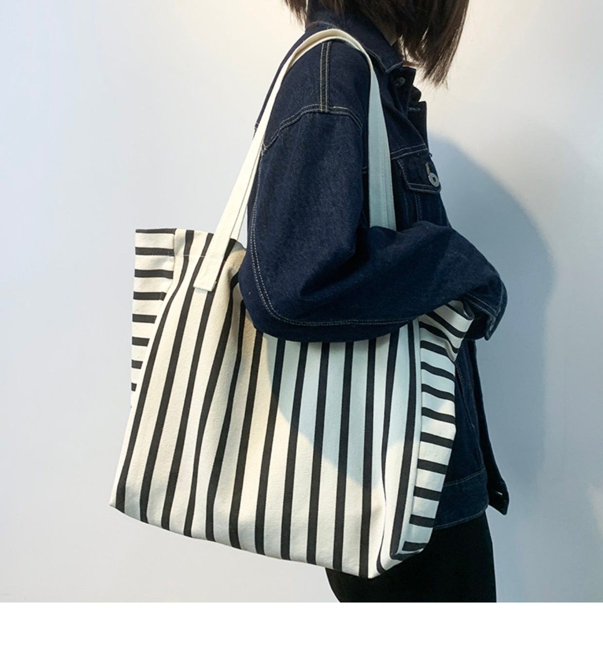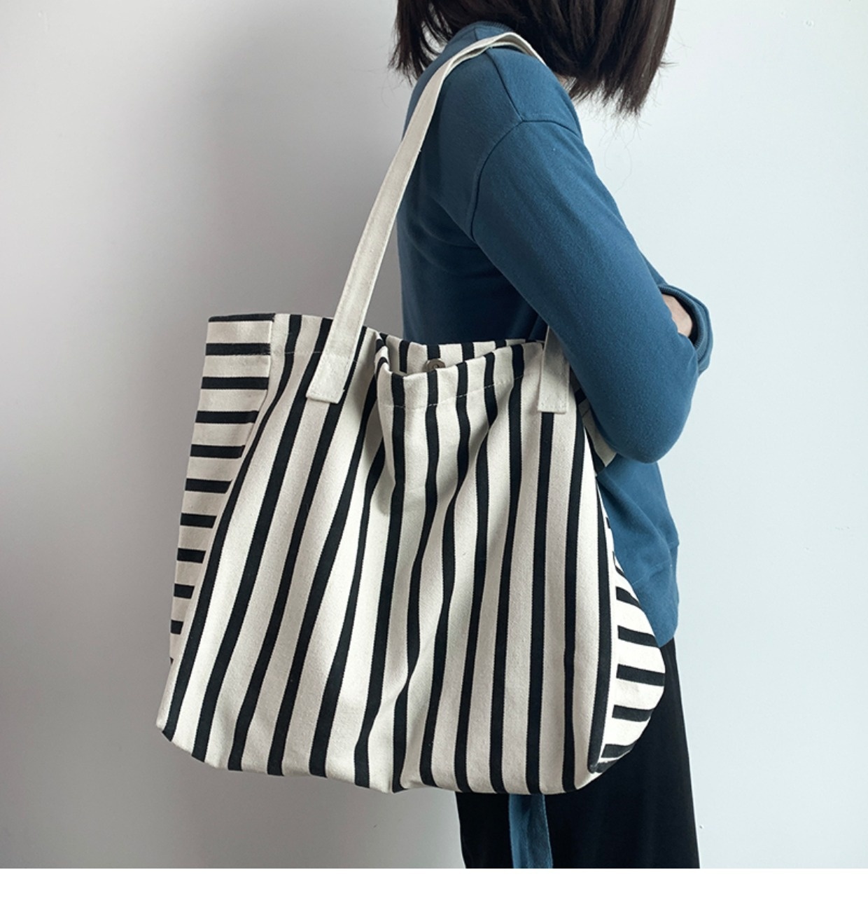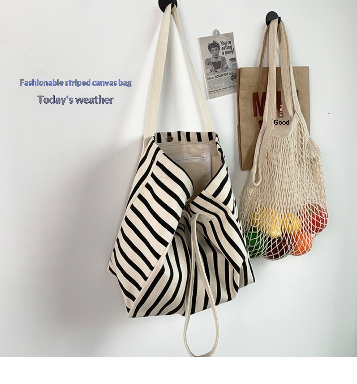 Striped Canvas Bag For Women Single-shoulder Large Capacity For Students