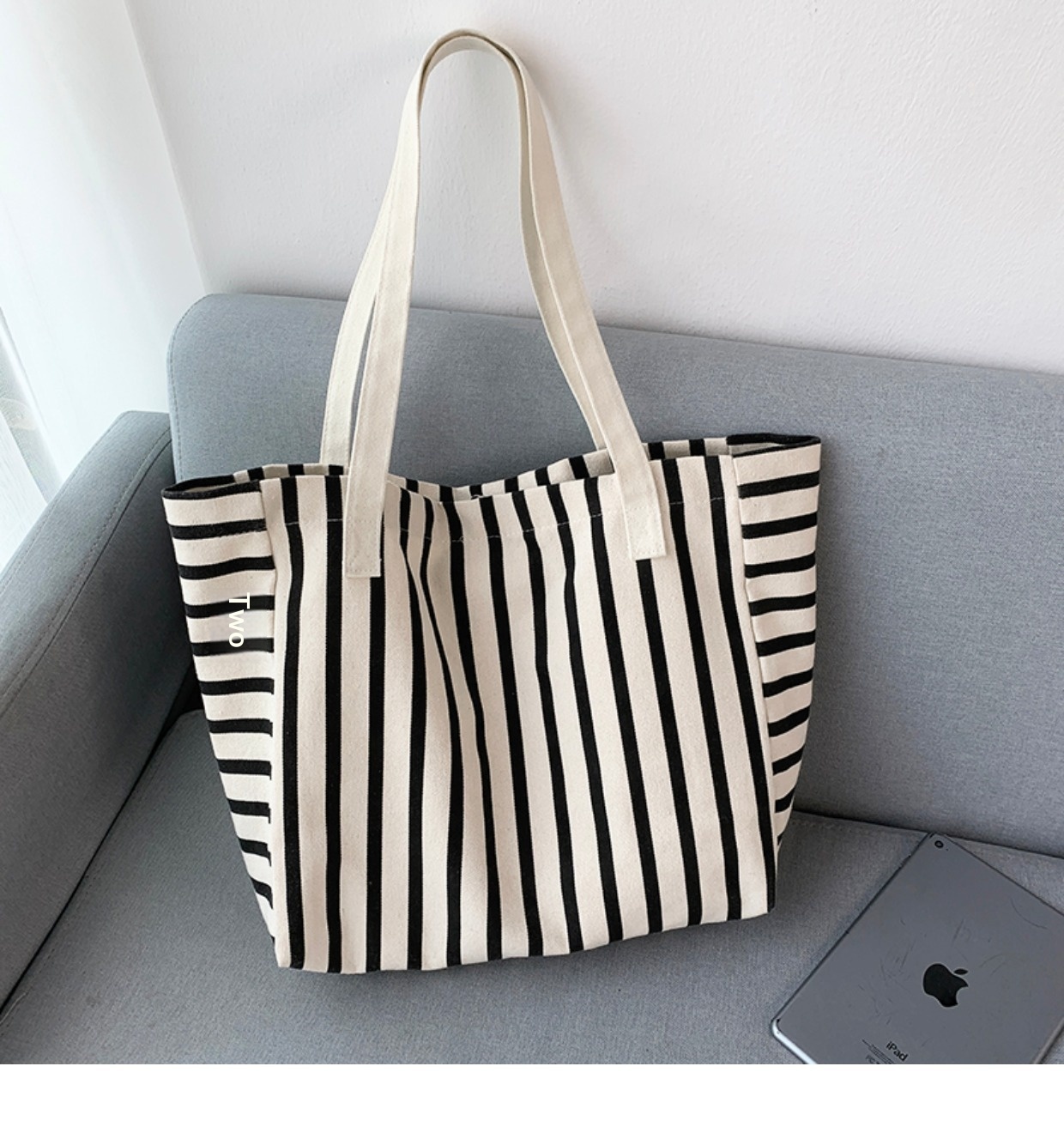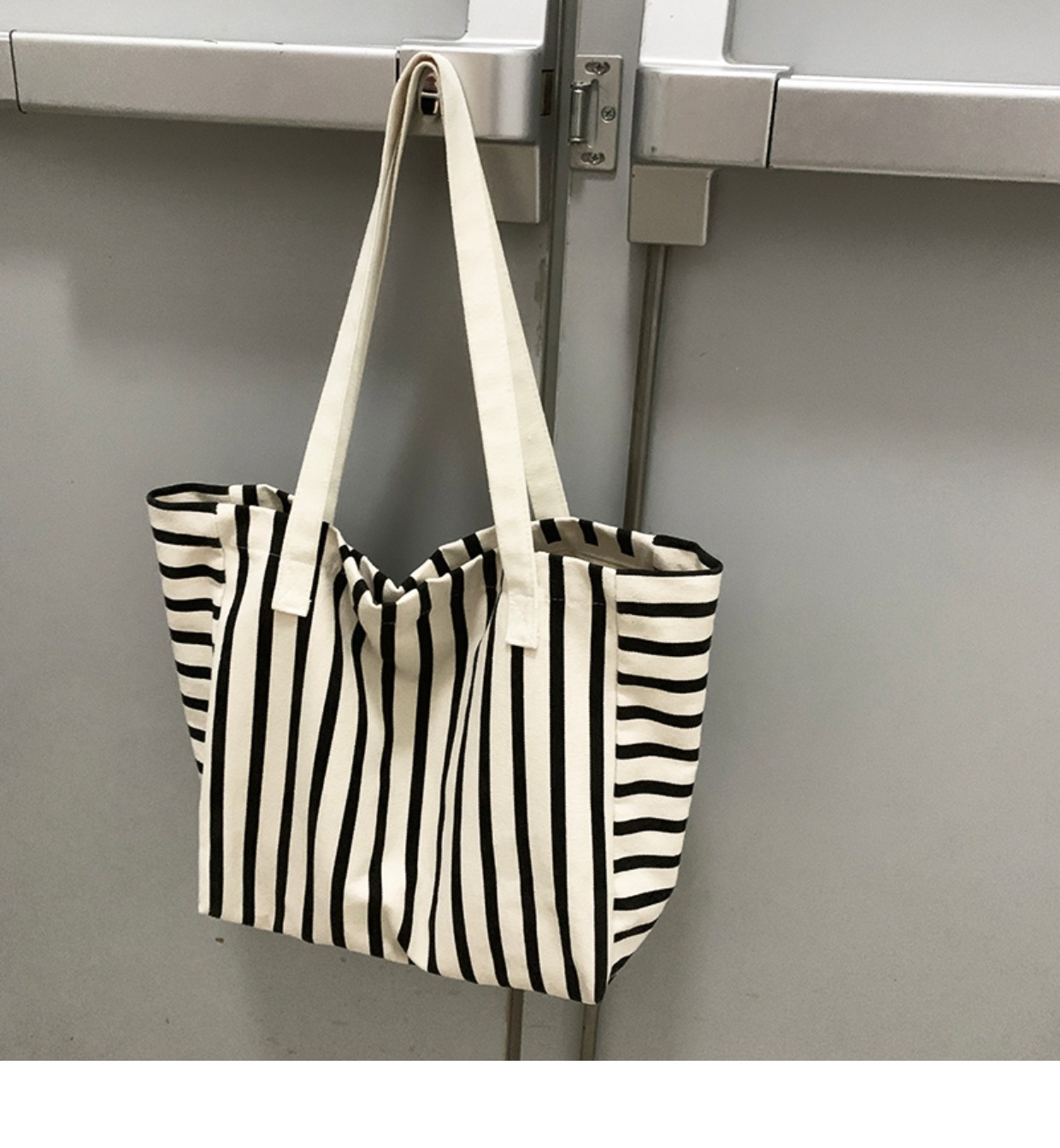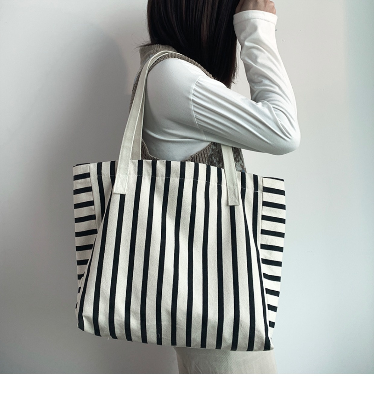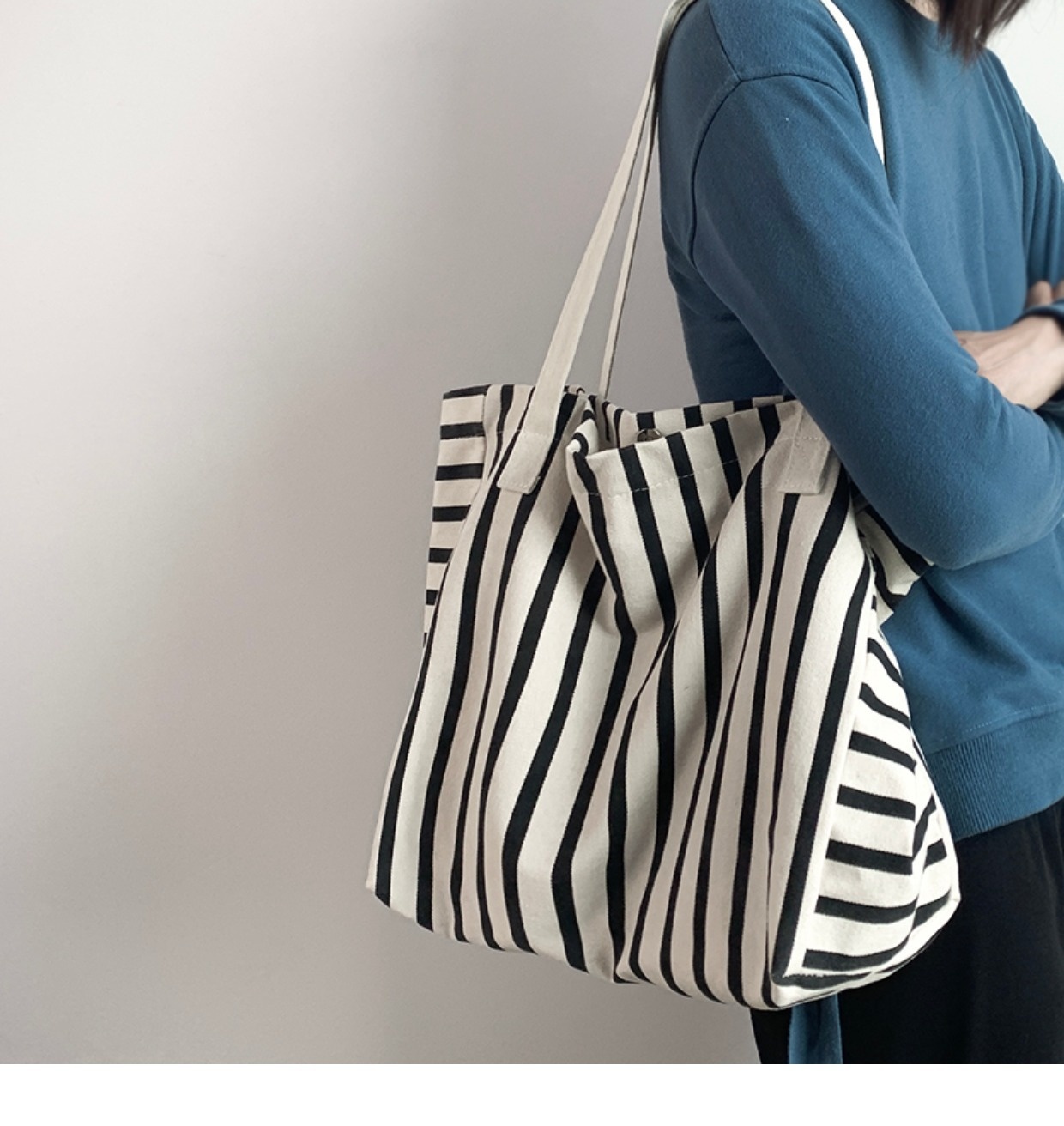 Striped Canvas Bag For Women Single-shoulder Large Capacity For Students