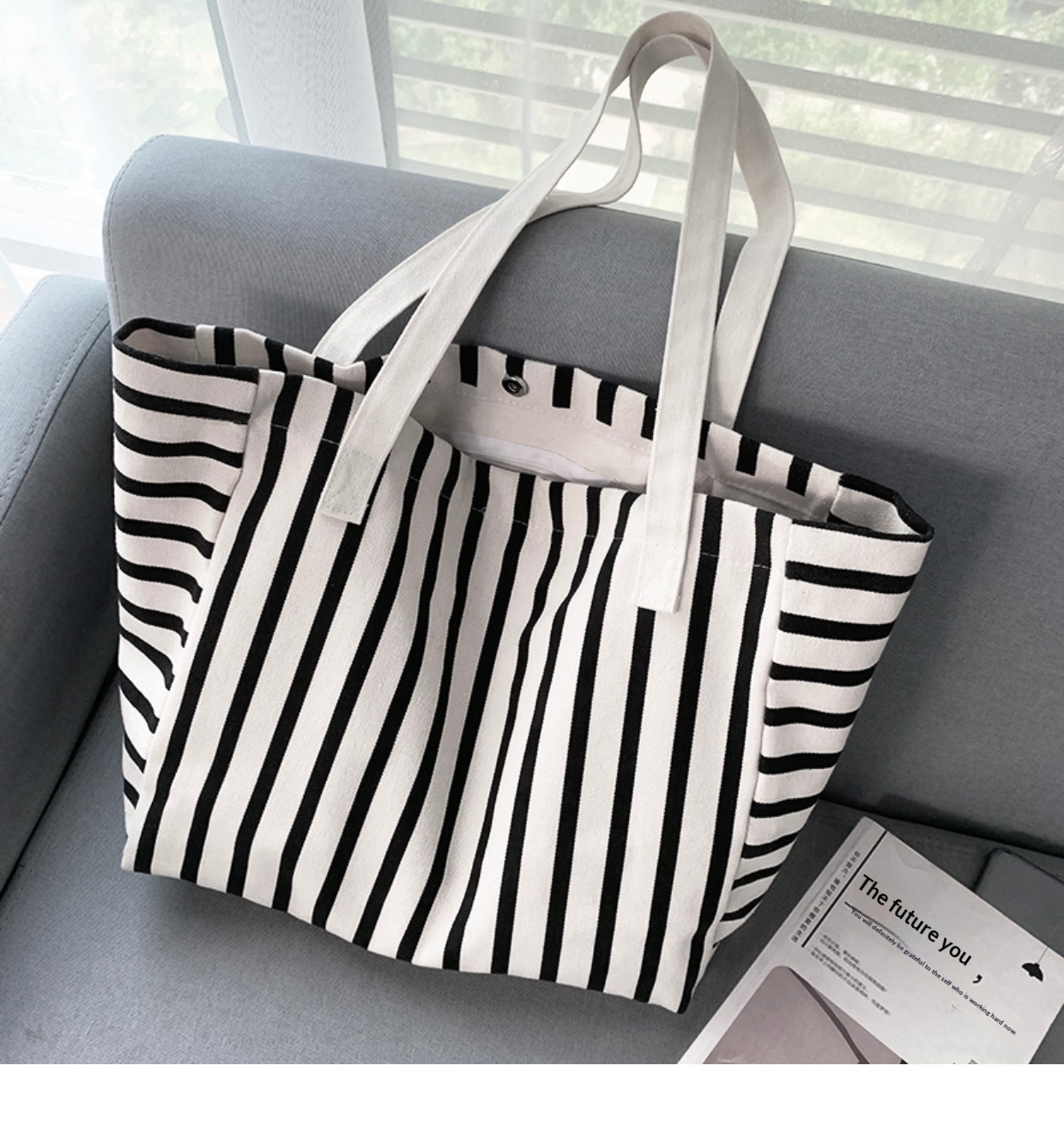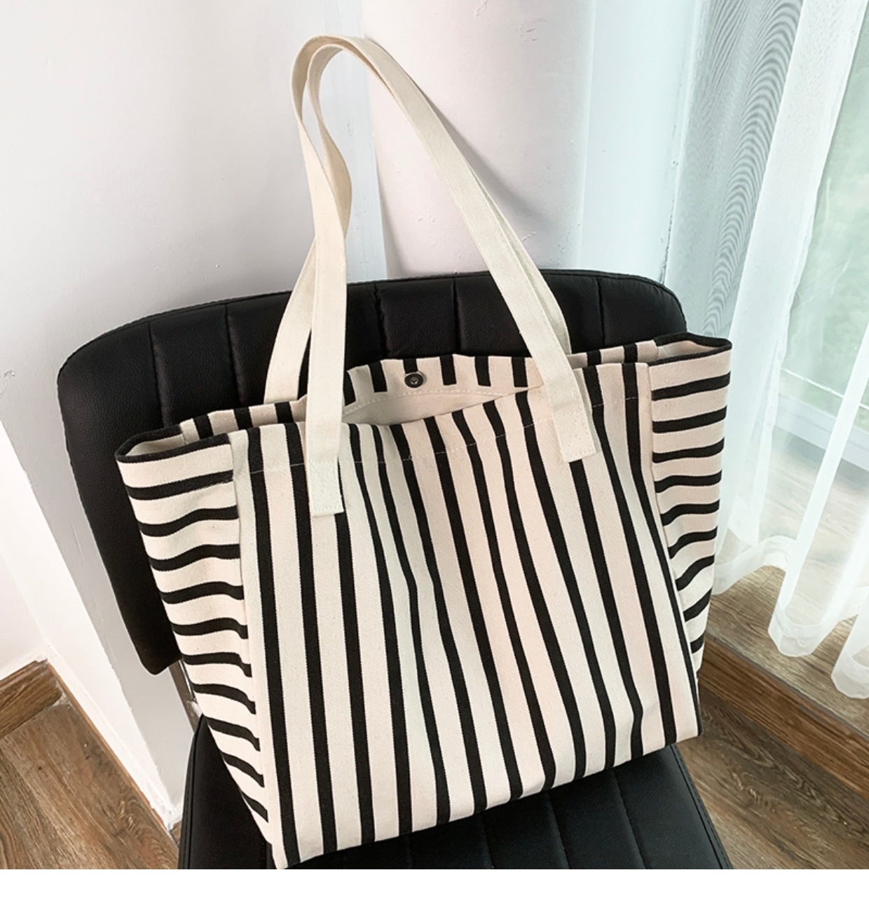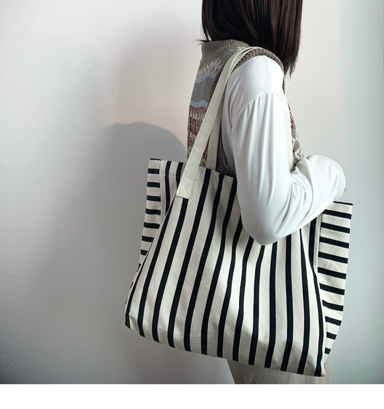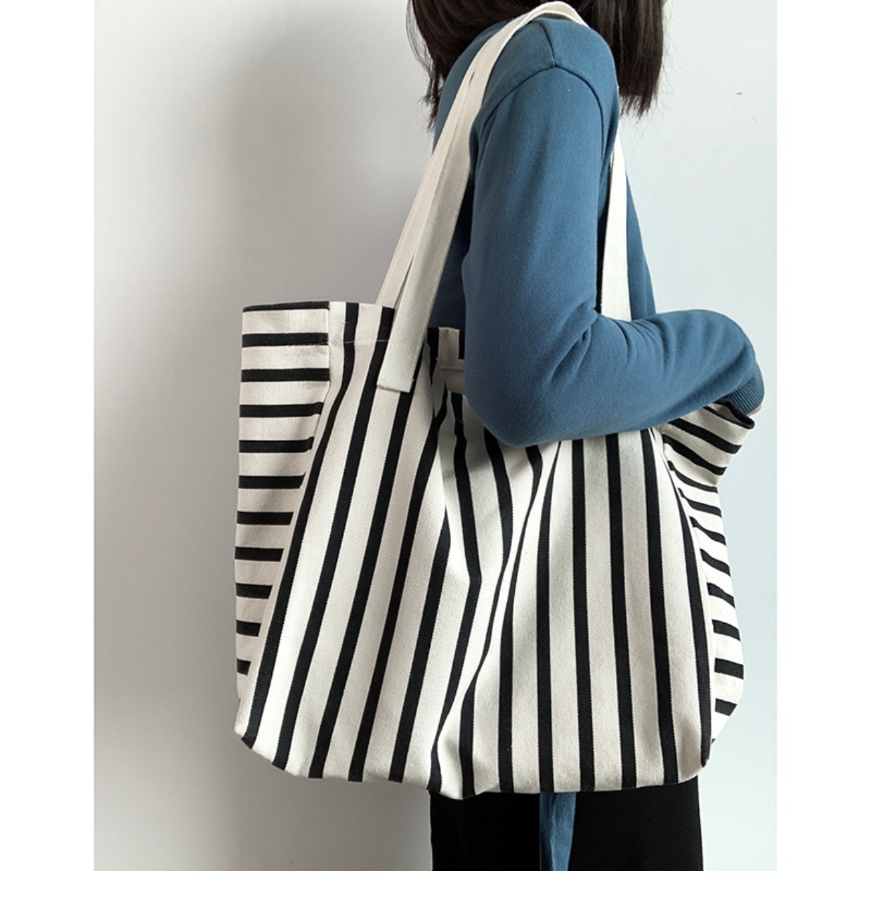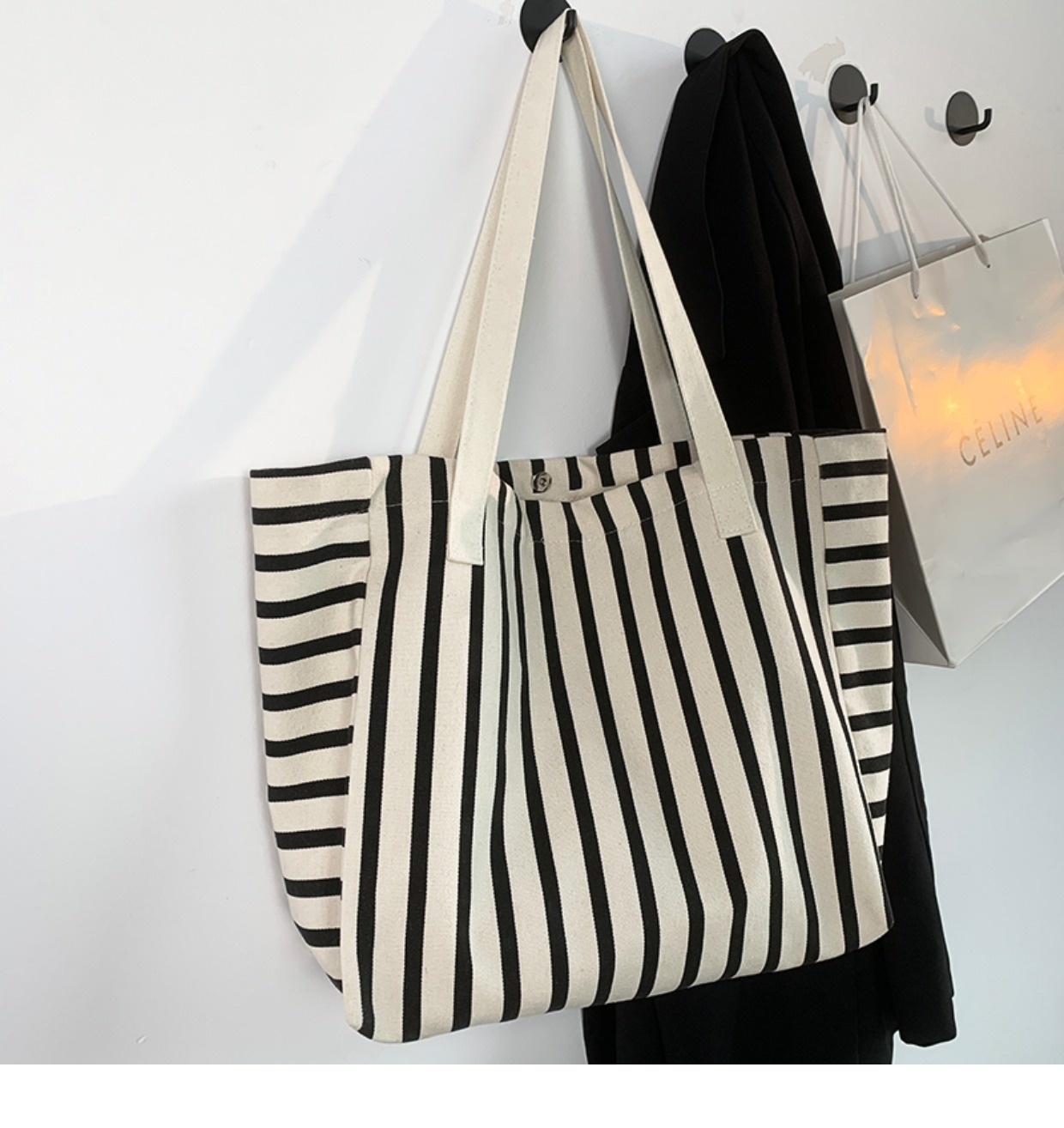 Striped Canvas Bag For Women Single-shoulder Large Capacity For Students