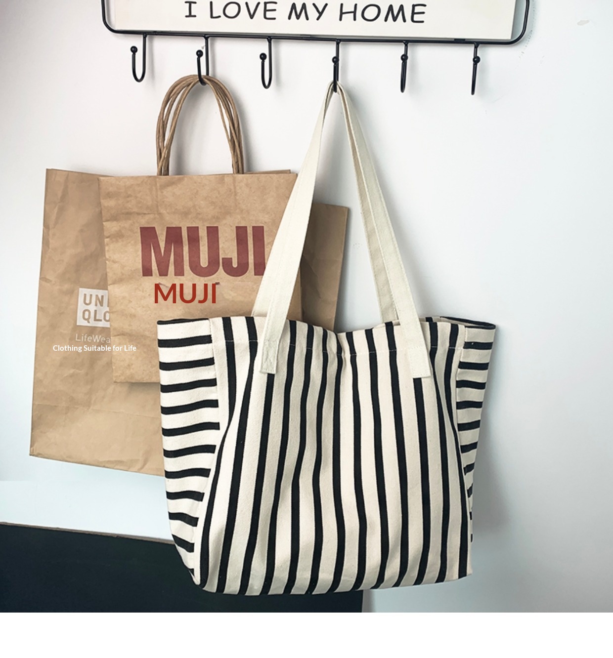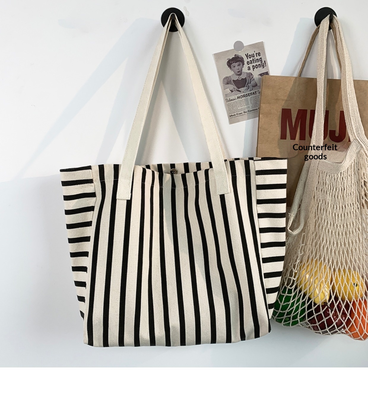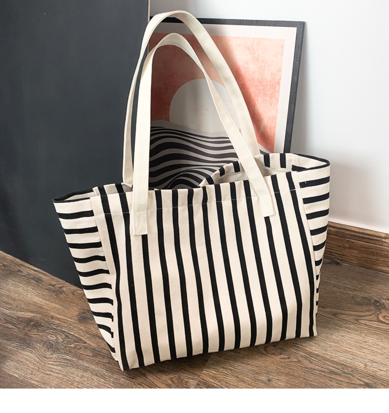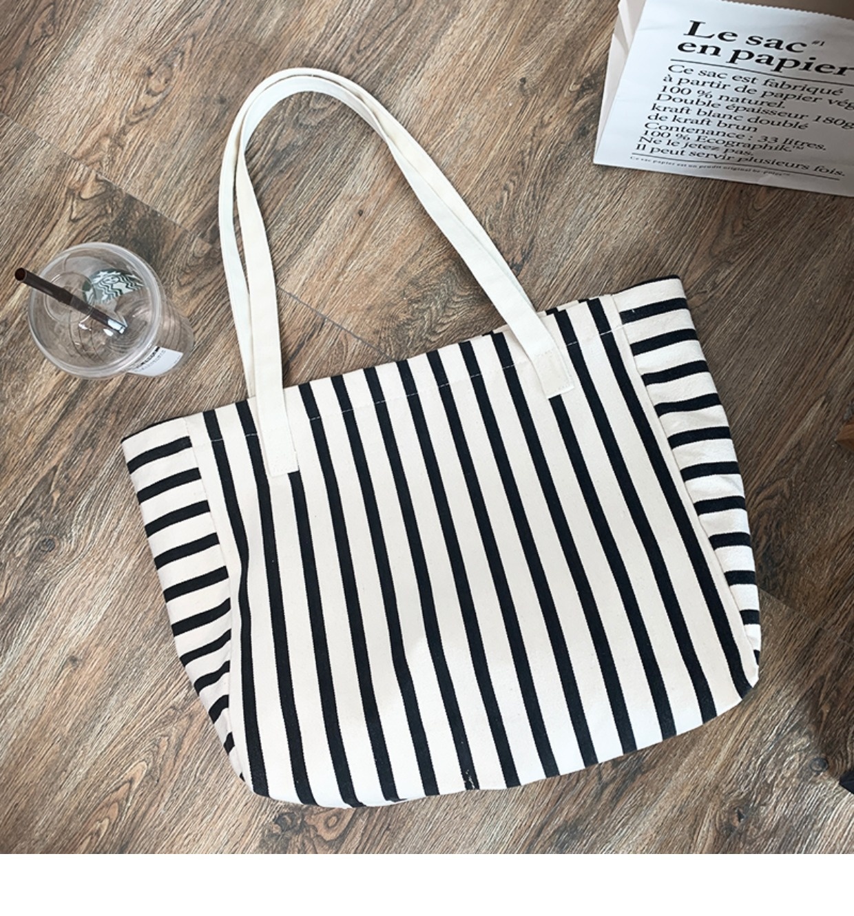 Striped Canvas Bag For Women Single-shoulder Large Capacity For Students