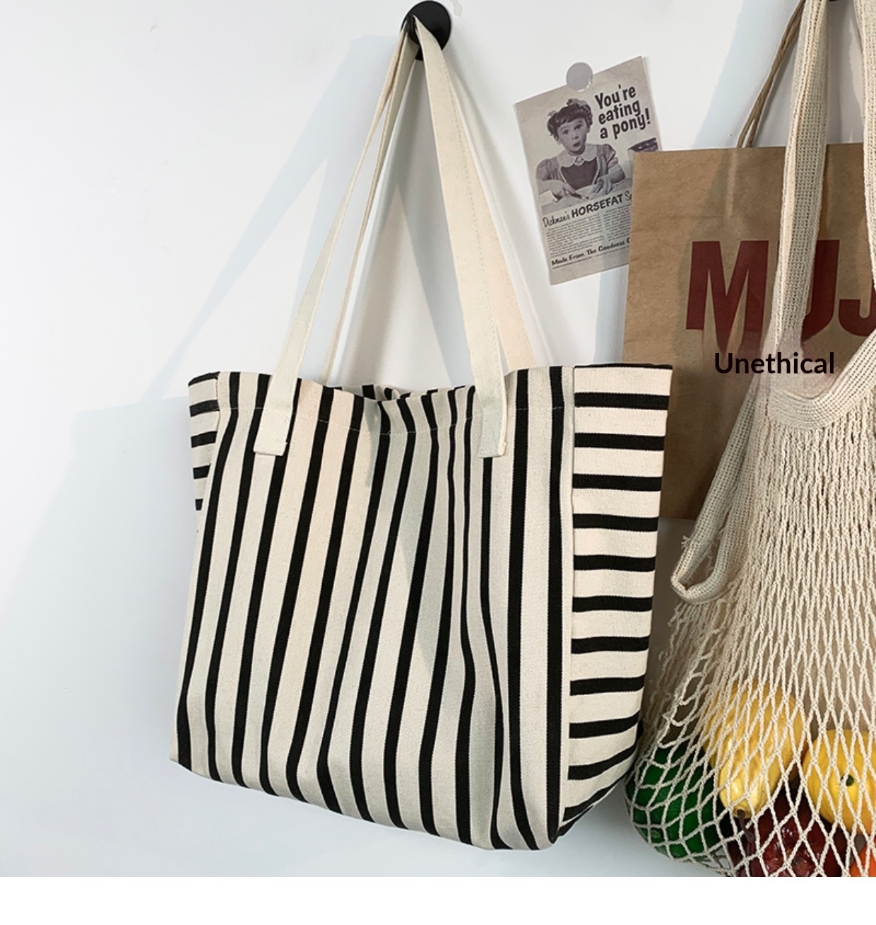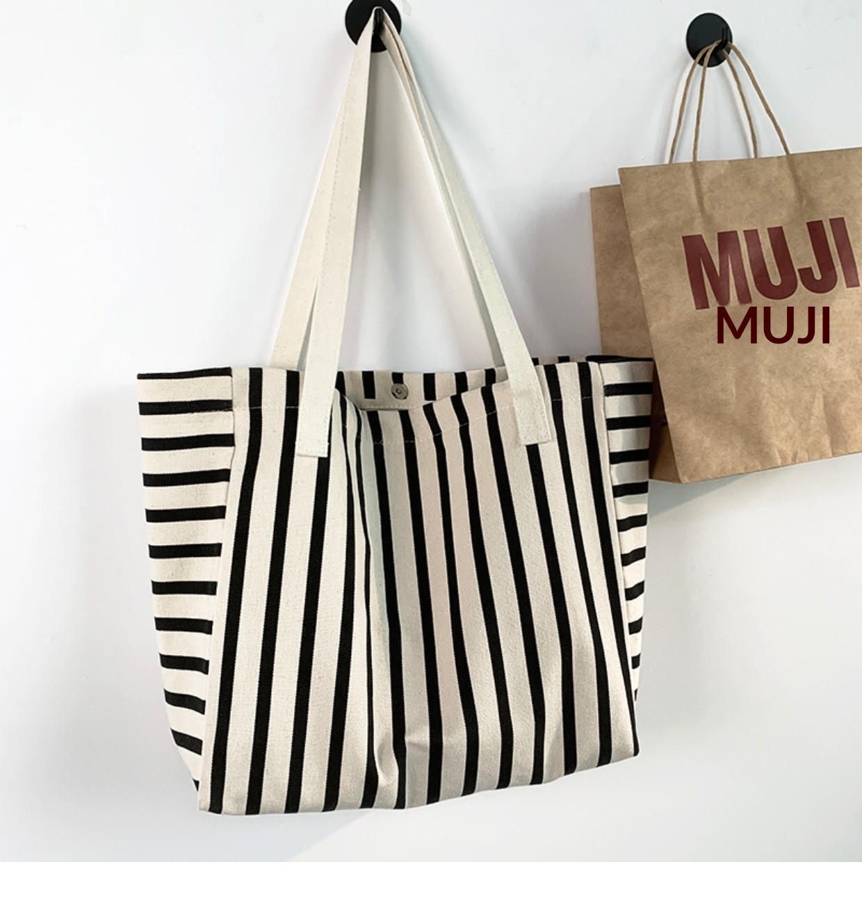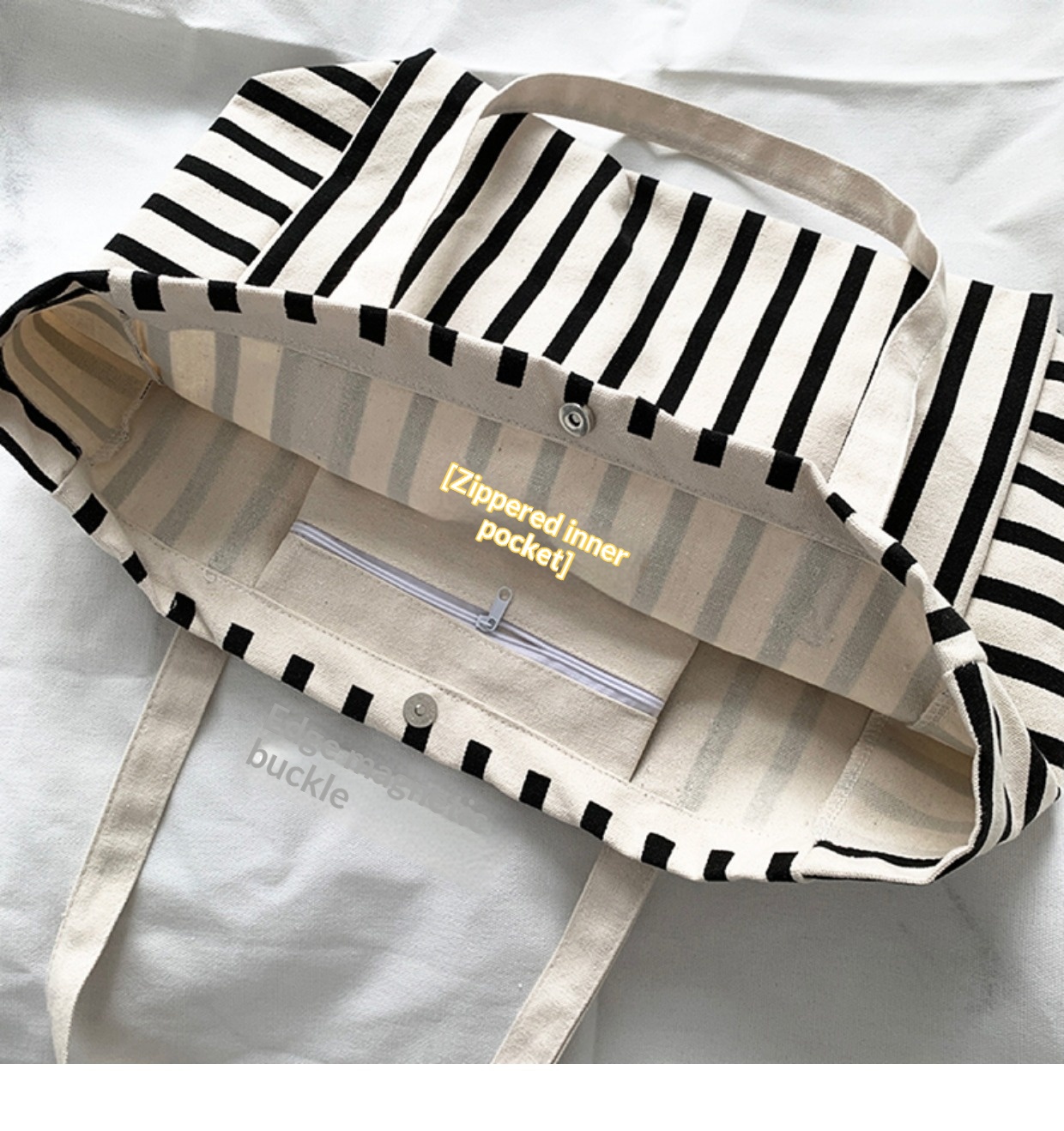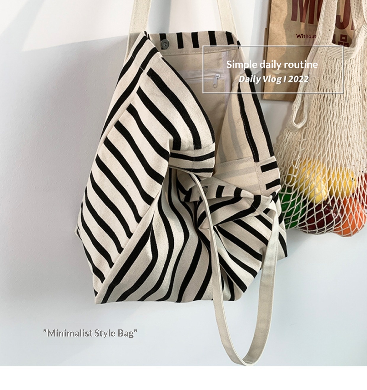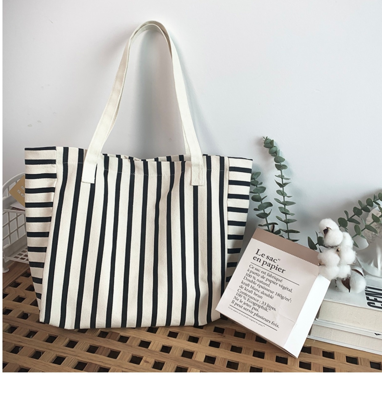 Striped Canvas Bag For Women Single-shoulder Large Capacity For Students