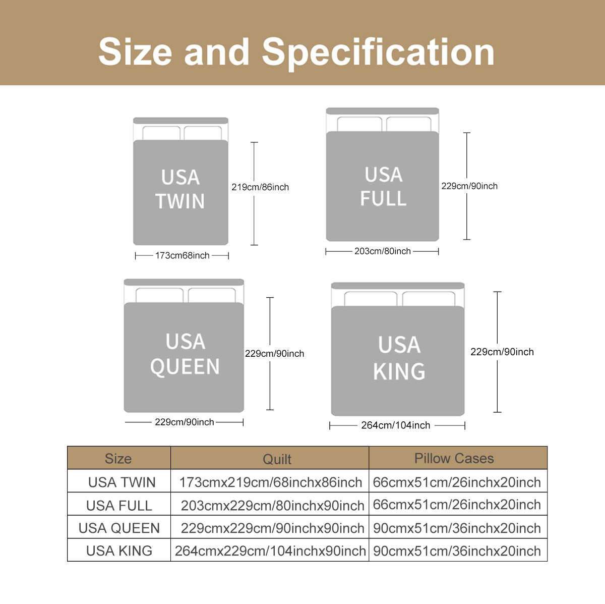 Range Of Sizes: Whether you have a twin, a queen, or a king-sized bed, we have the right bedding for you! All comforters come with 2 3D sham covers that print the design, and the blanket is reversible for when you want to change the design of your bedroom.
