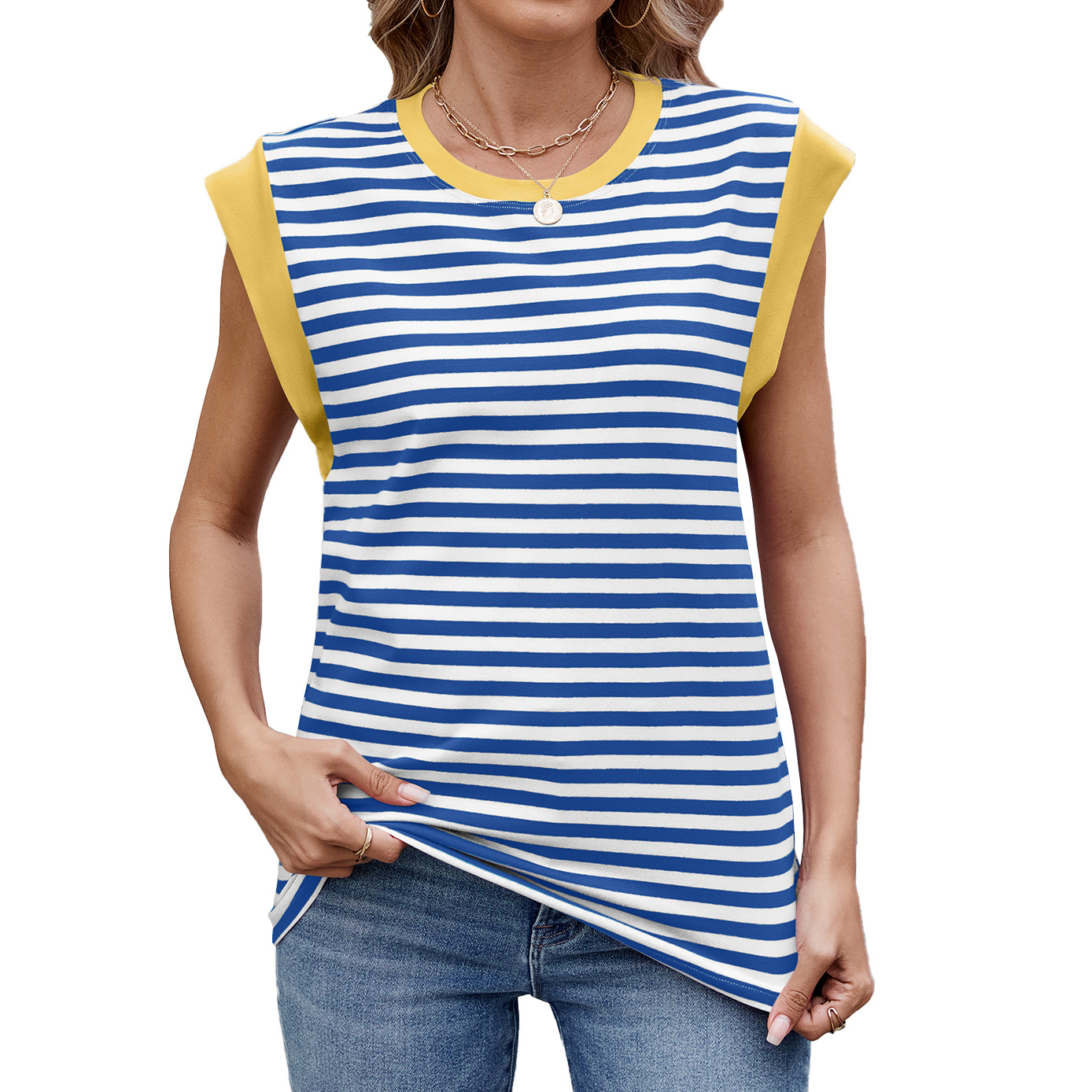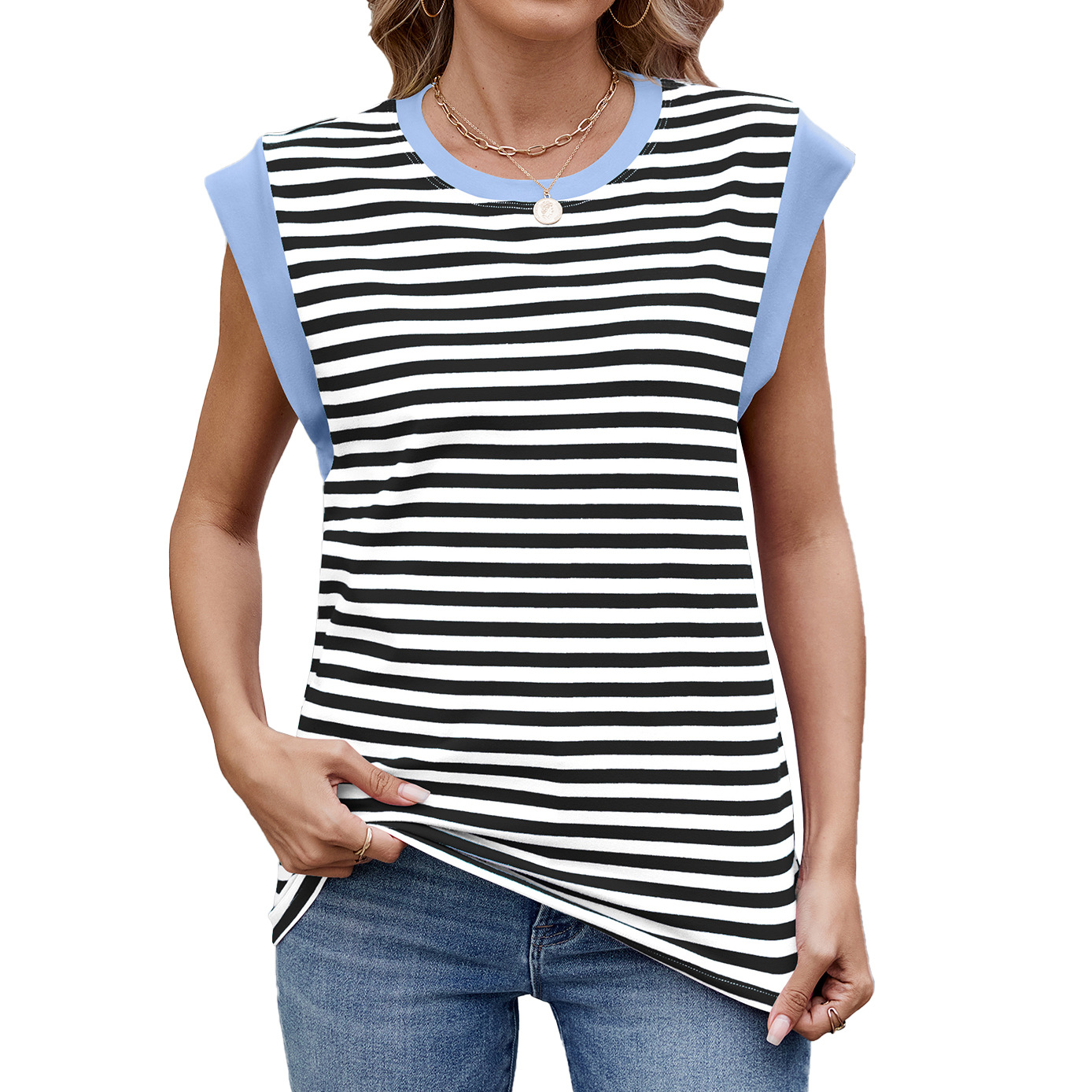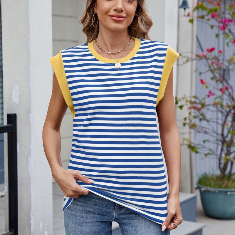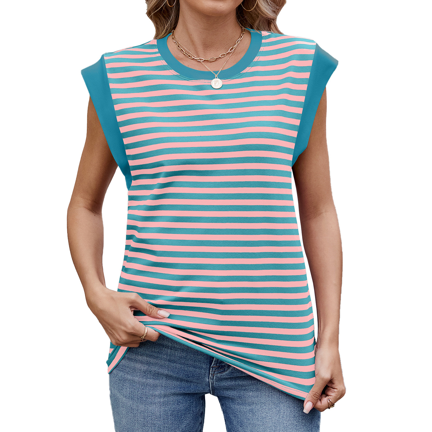 Striped Contrast Color Round Neck Loose Short Sleeves