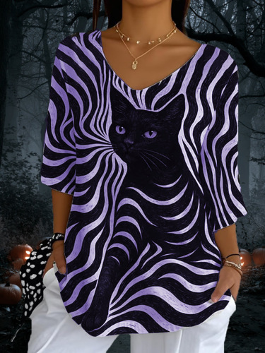 Striped Crew-neck Loose-fit Women's Top