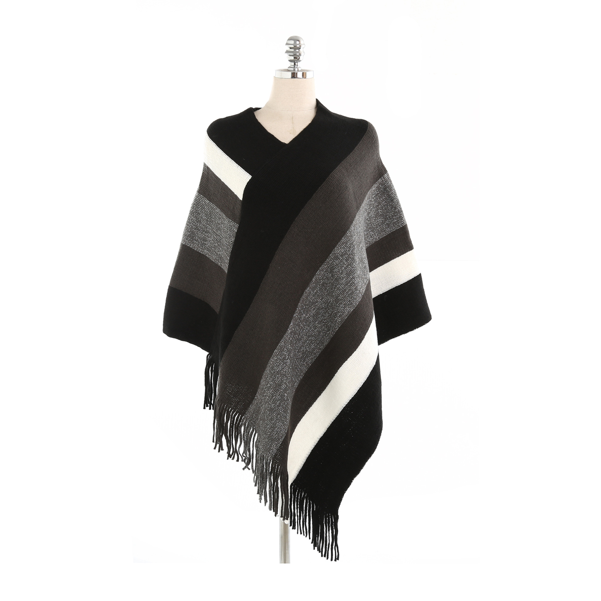 Women's sexy large size autumn and winter thick stripes sewing tassel sweater cashmere shawl women's latest latest warmth
