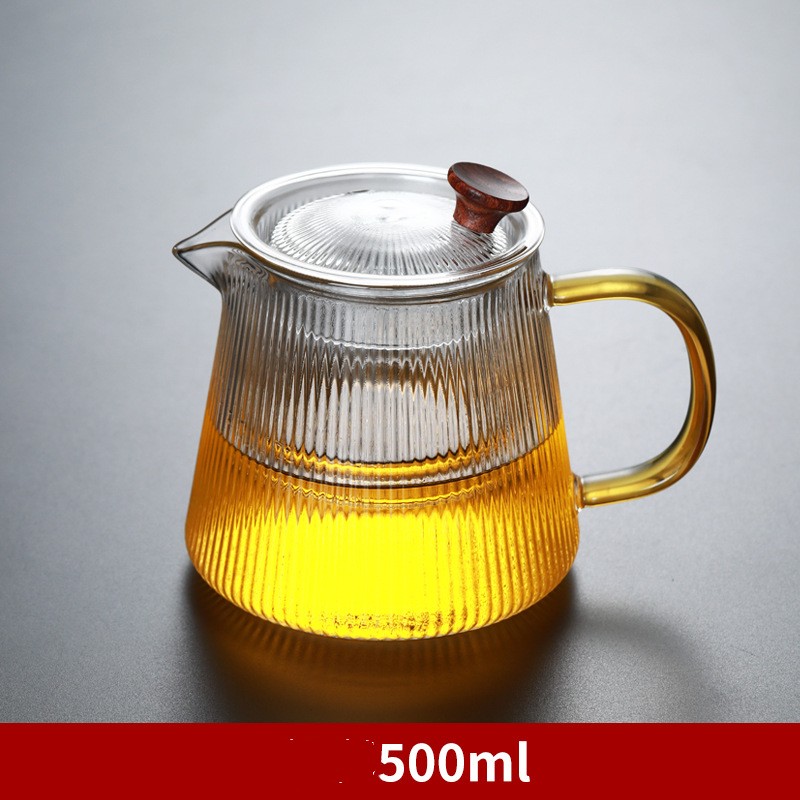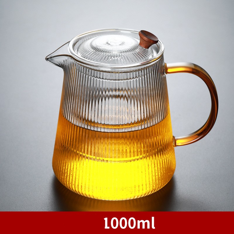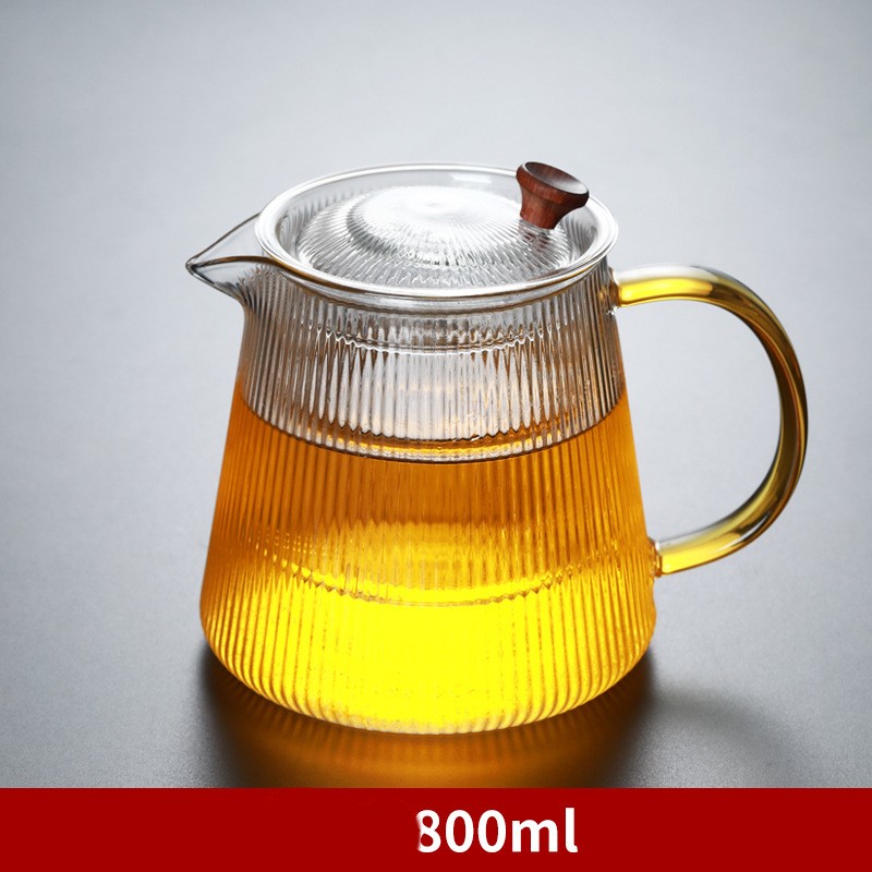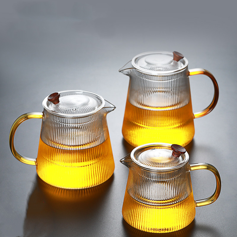 Striped Glass Teapot Thickened Heat Resistant Vertical Filter