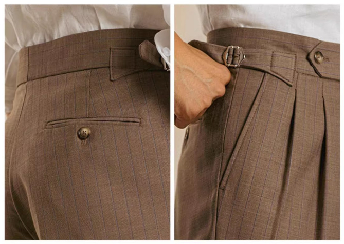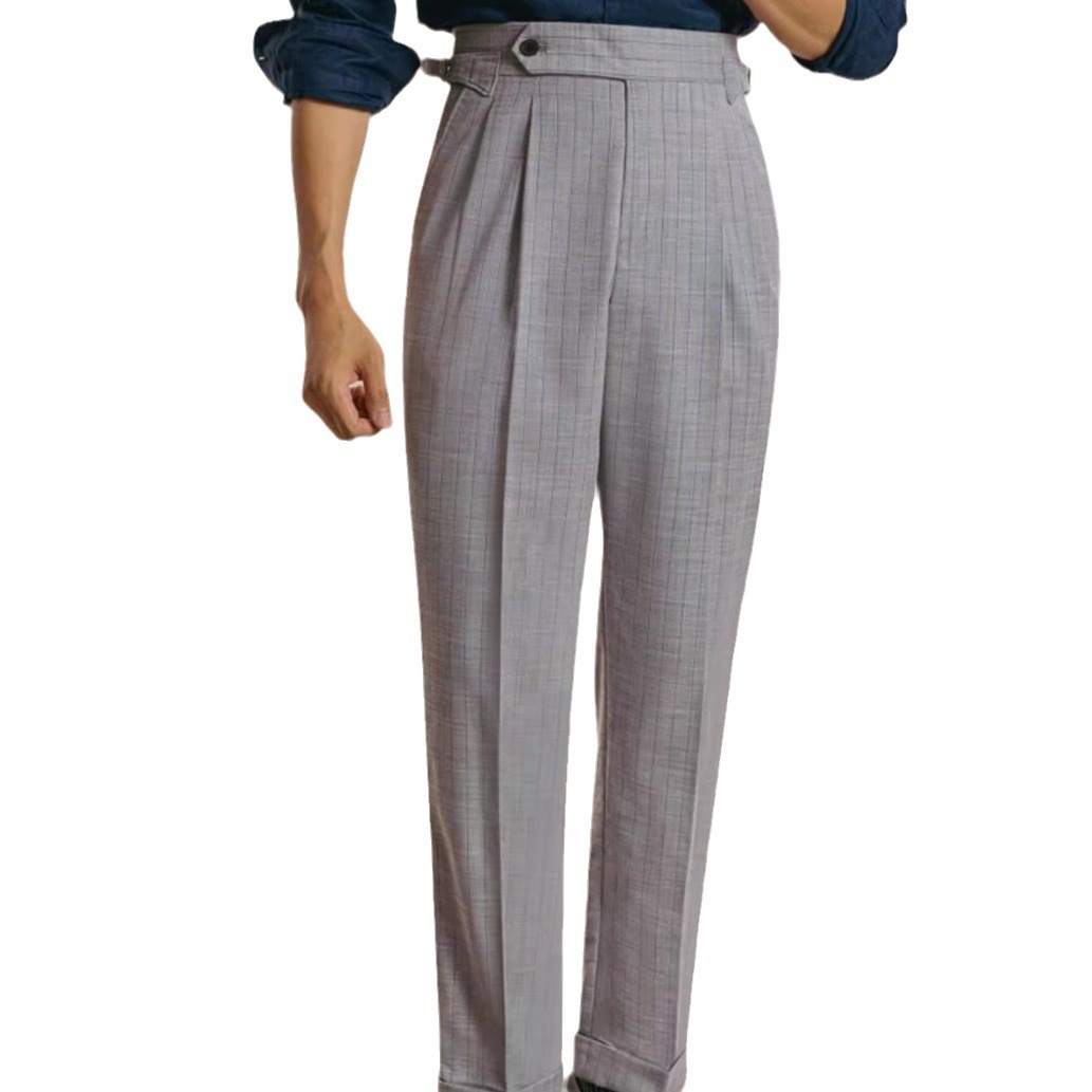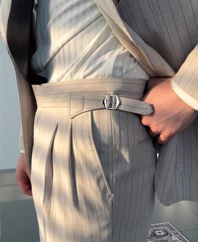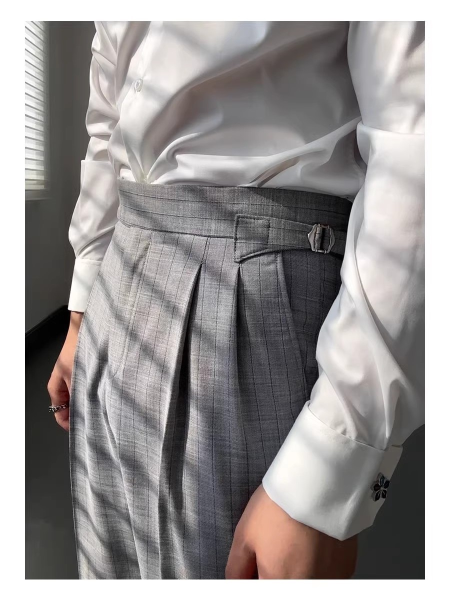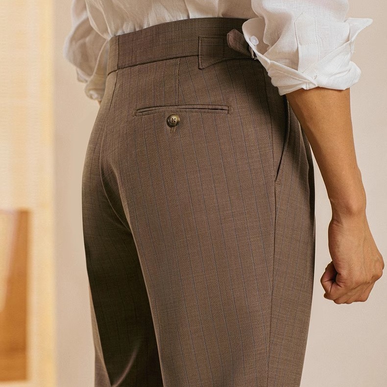 Striped High-waisted Trousers Casual Business Buckle Adjustable Pants