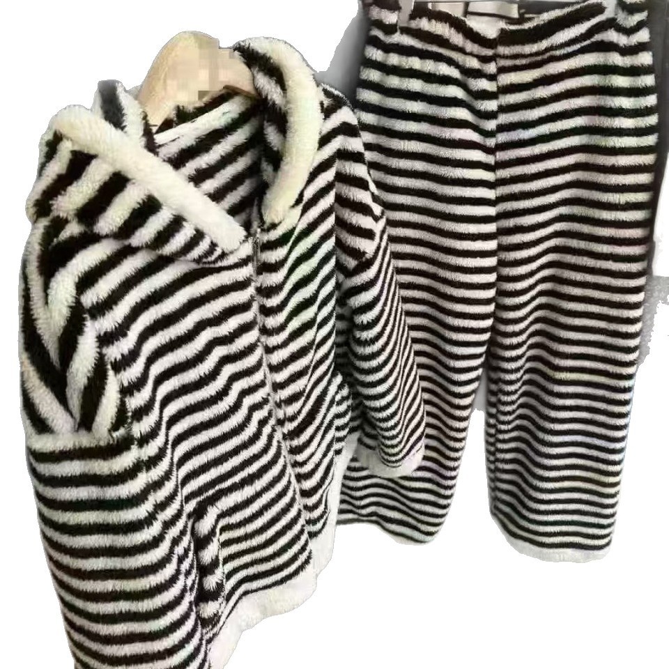Style: Striped hooded suit, striped stand-up collar suit