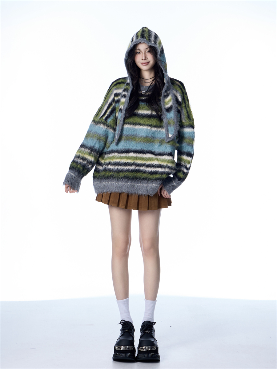 Color classification: purple, gray, purple (top beanie hat), Gray (top beanie hat)