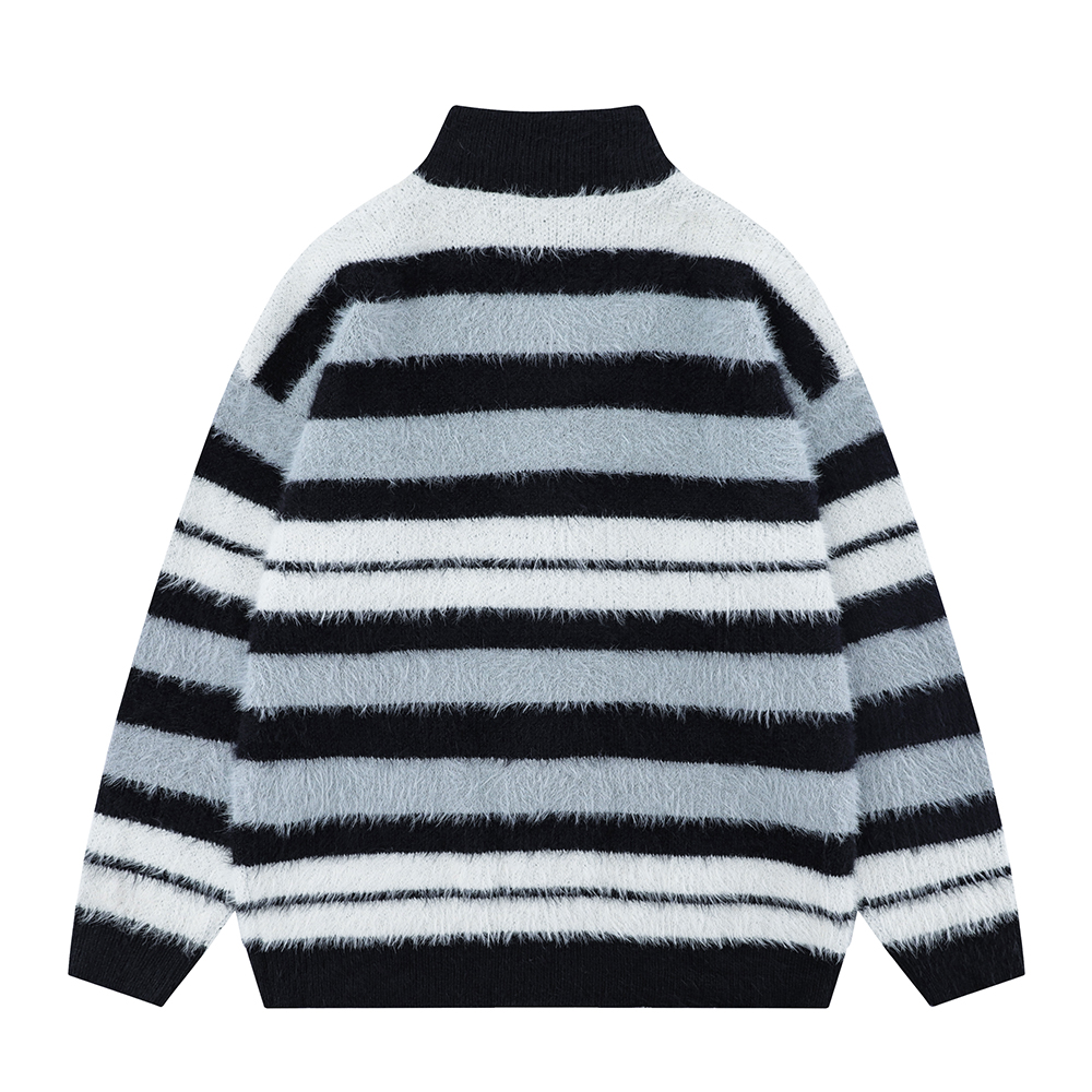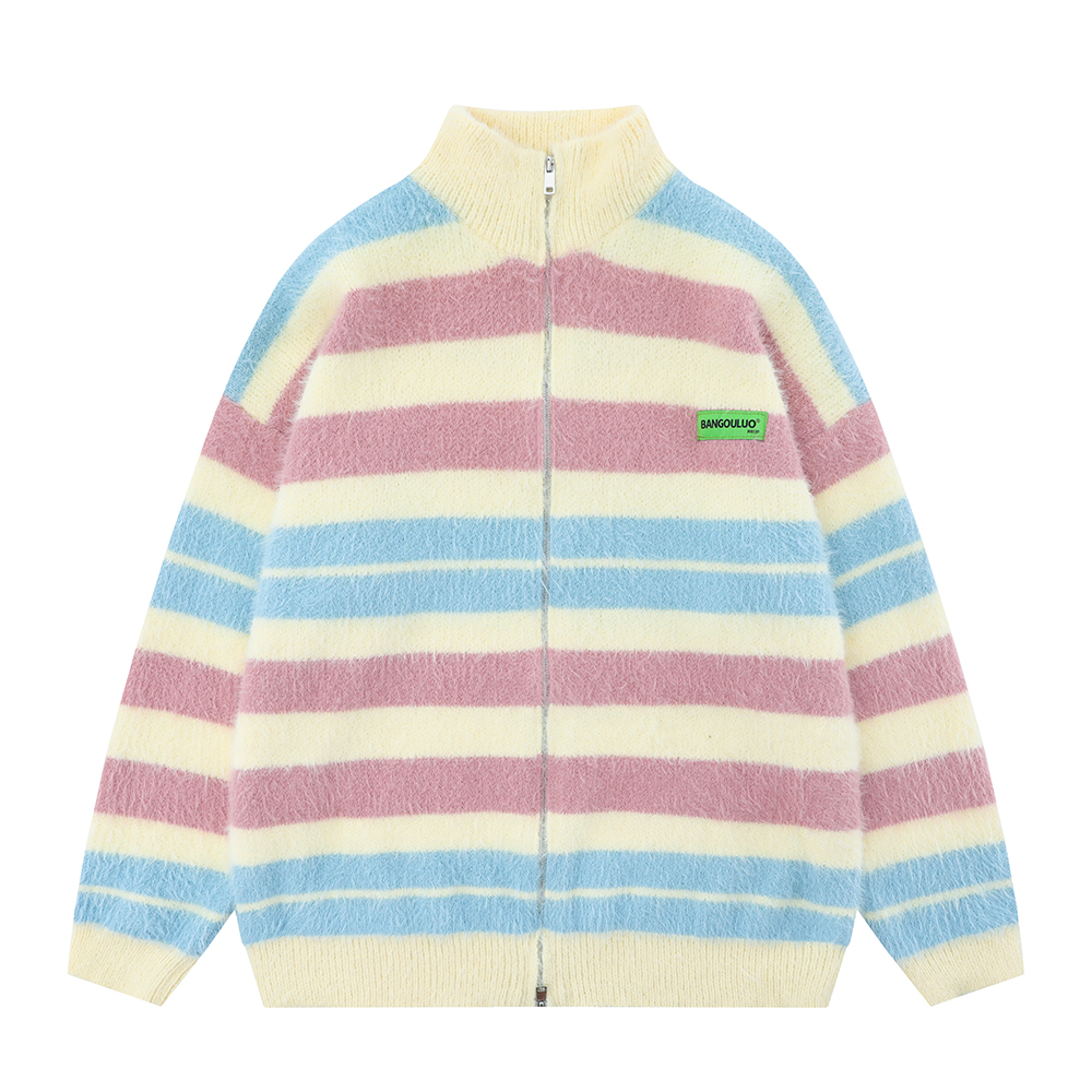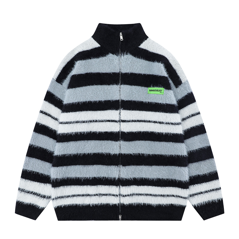 Striped Knitted Sweater Coat Men