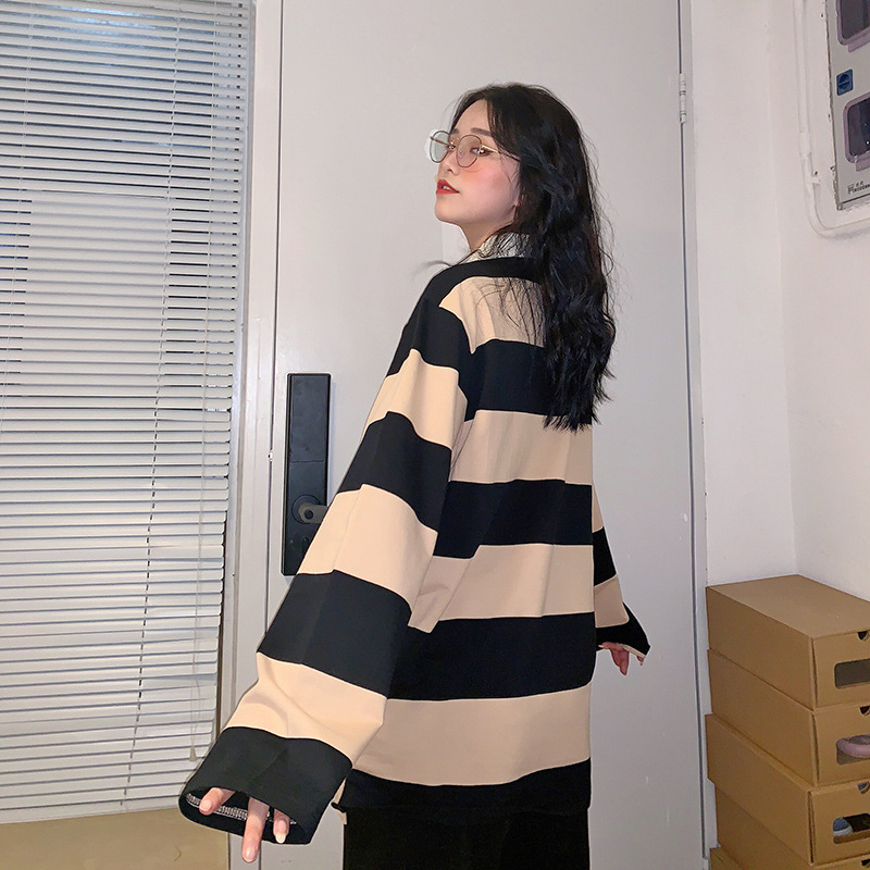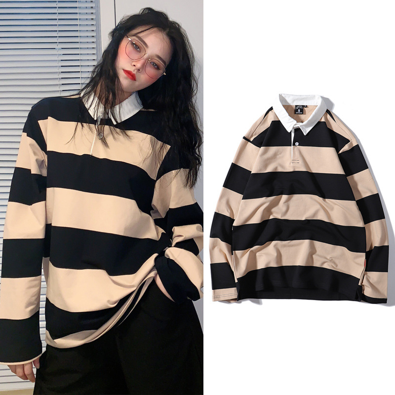 Striped Lapel Sweater Long-sleeved T-shirt Men