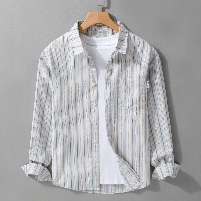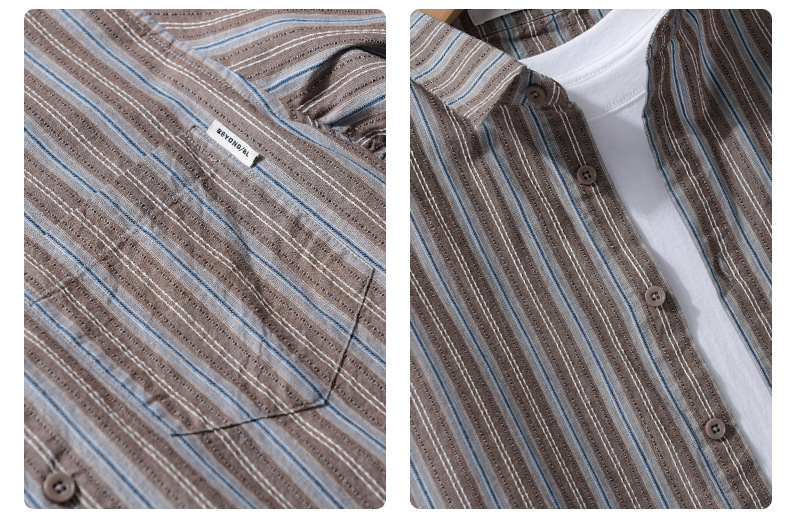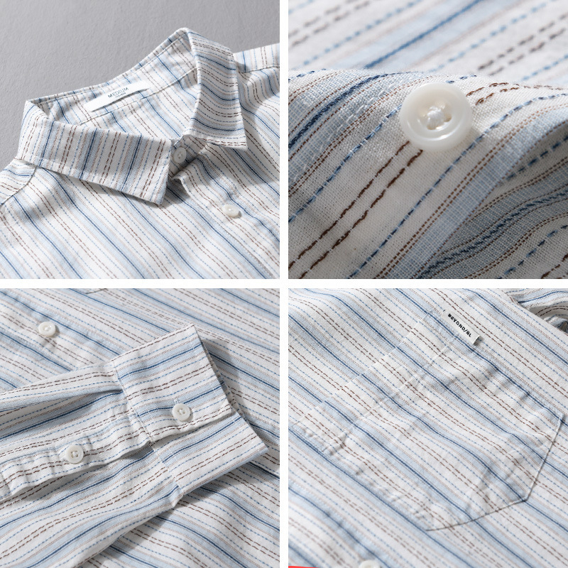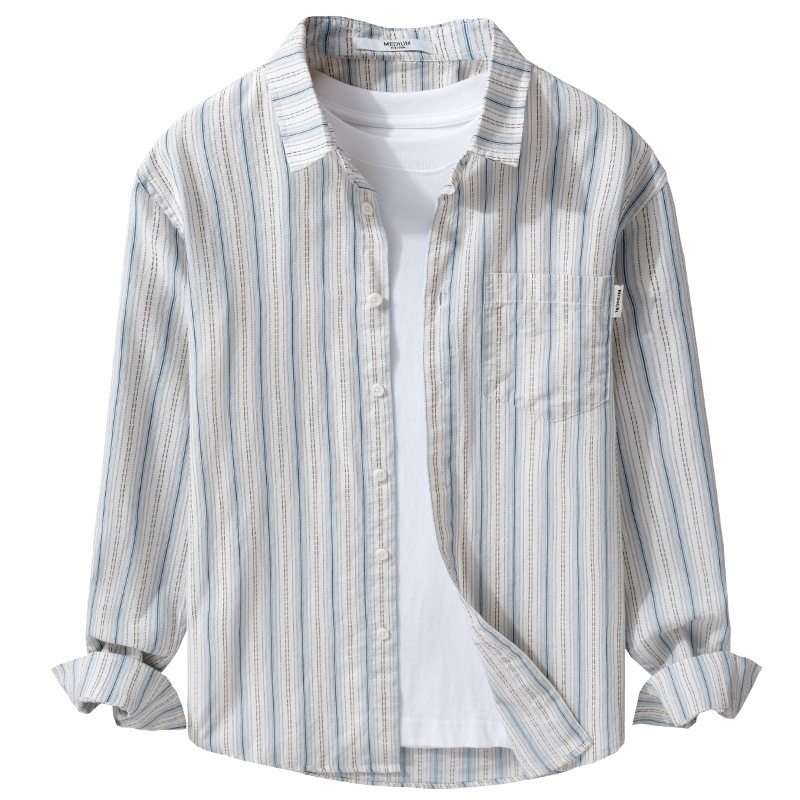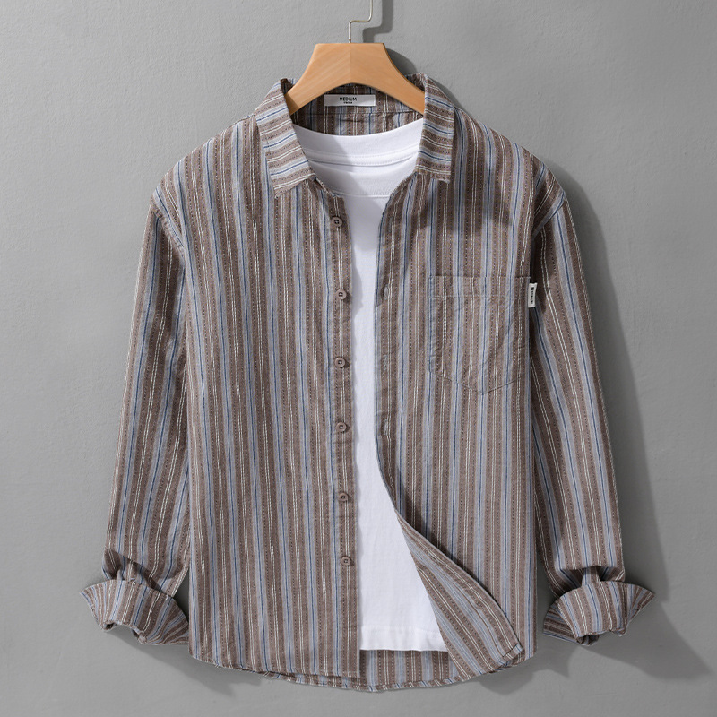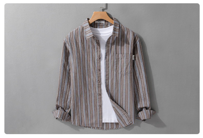 Pattern Striped Color Beige-and-blue Stripes, Light-brown Stripes Size M, L, XL, 2XL, 3XL Fit Loose Fit Style Cardigan Thickness Regular Fabric Name Cotton Blend Occasion Everyday Wear Main Fabric Content Cotton Sleeve Length Long Sleeve Season SpringAutumn Style Japanese Casual And Fresh