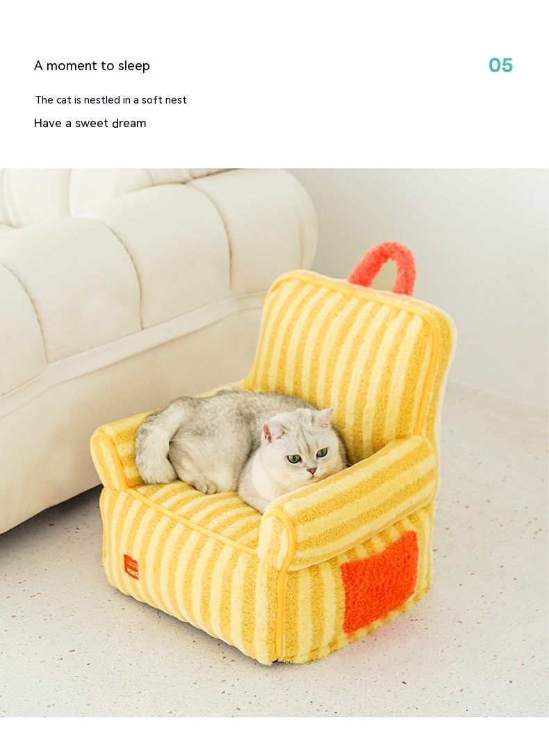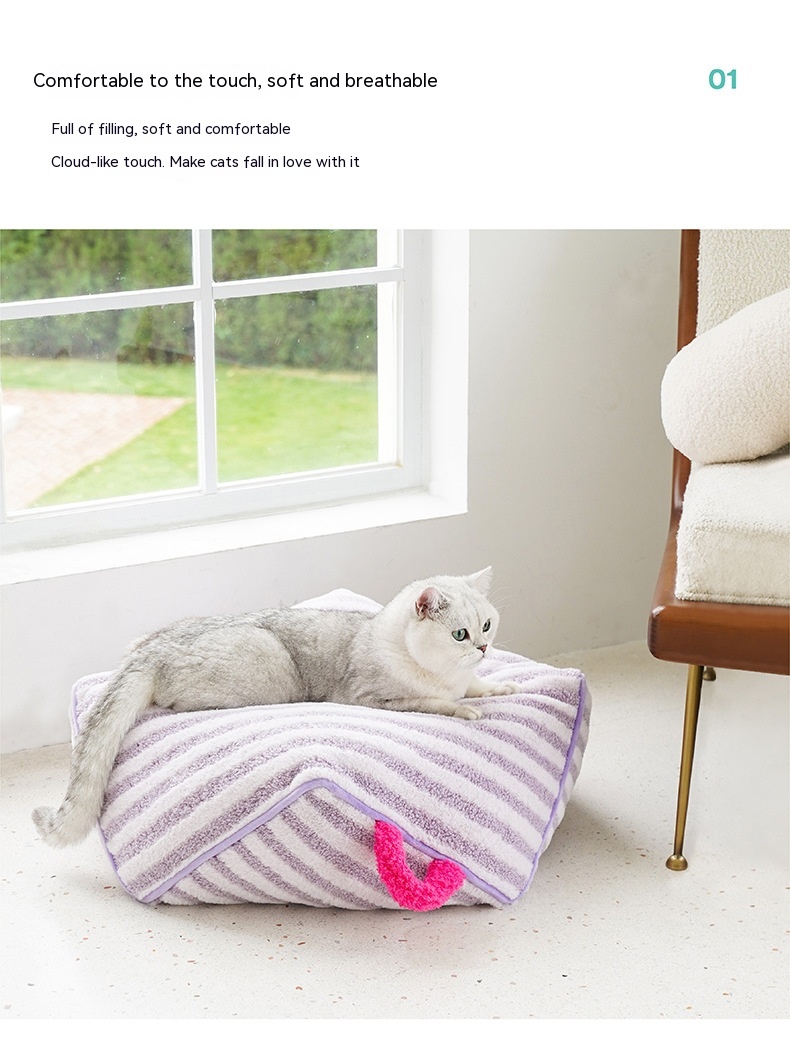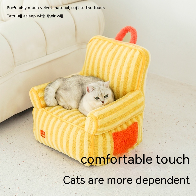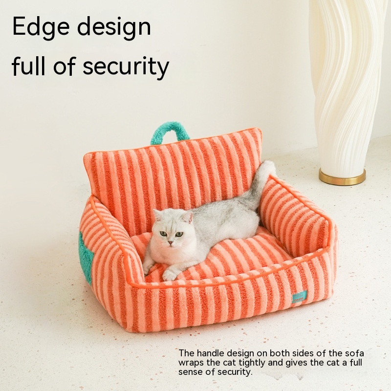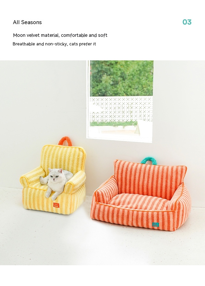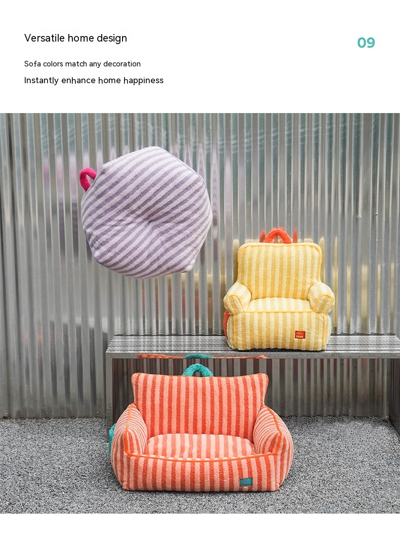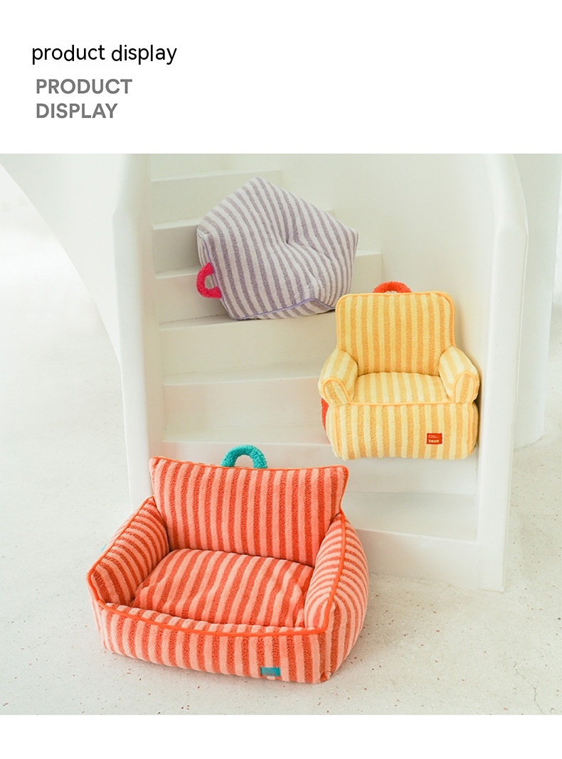 Color: striped soft velvet pet sofa yellow, striped soft velvet pet bed Orange Basic version Old Style, striped soft velvet pet pad-purple