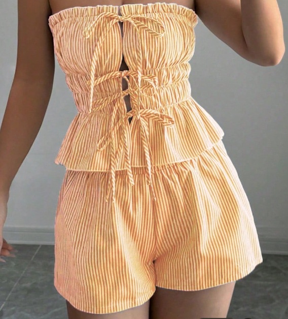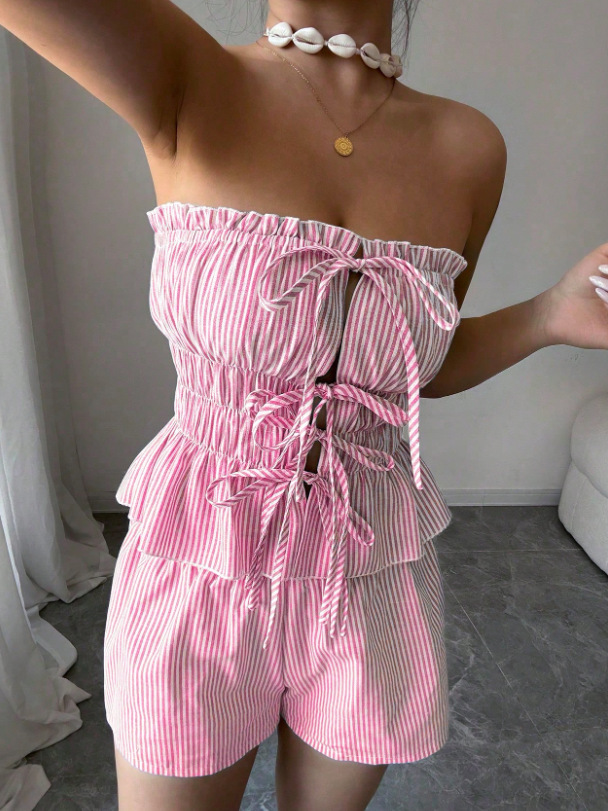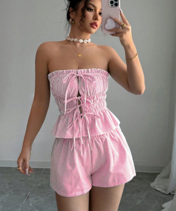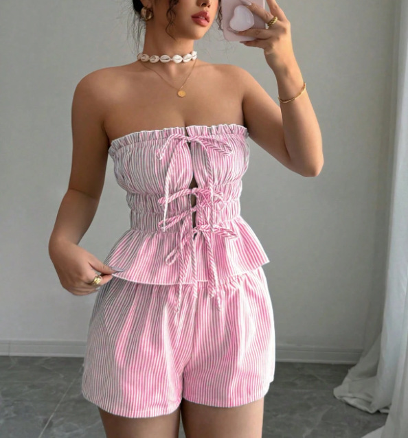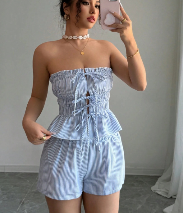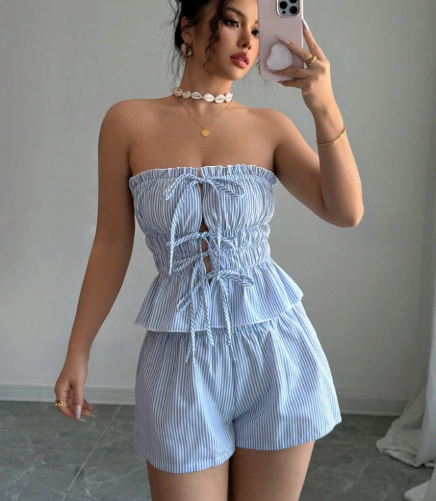 Trendy Elements: Stripes, Ruffles, Lace-up Details