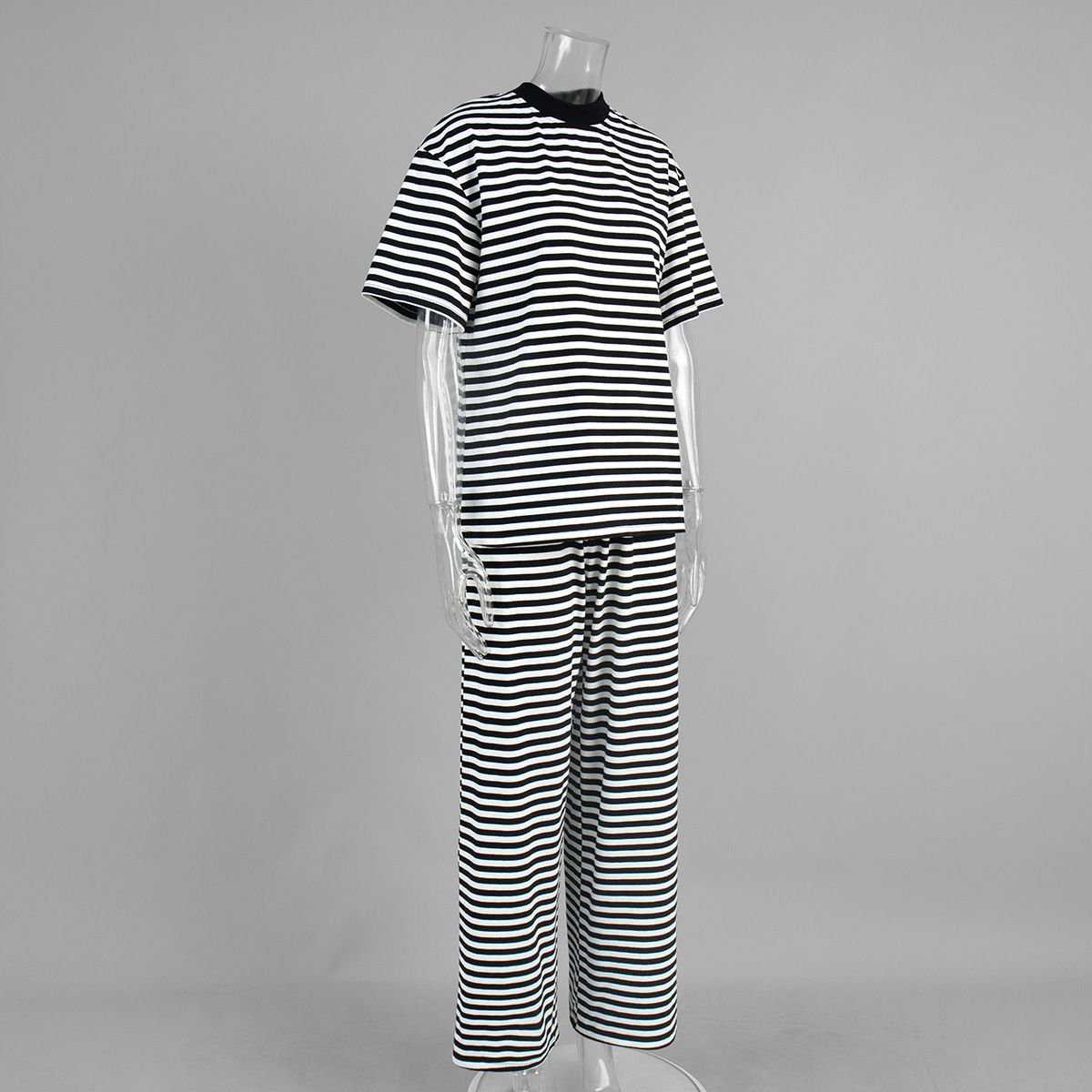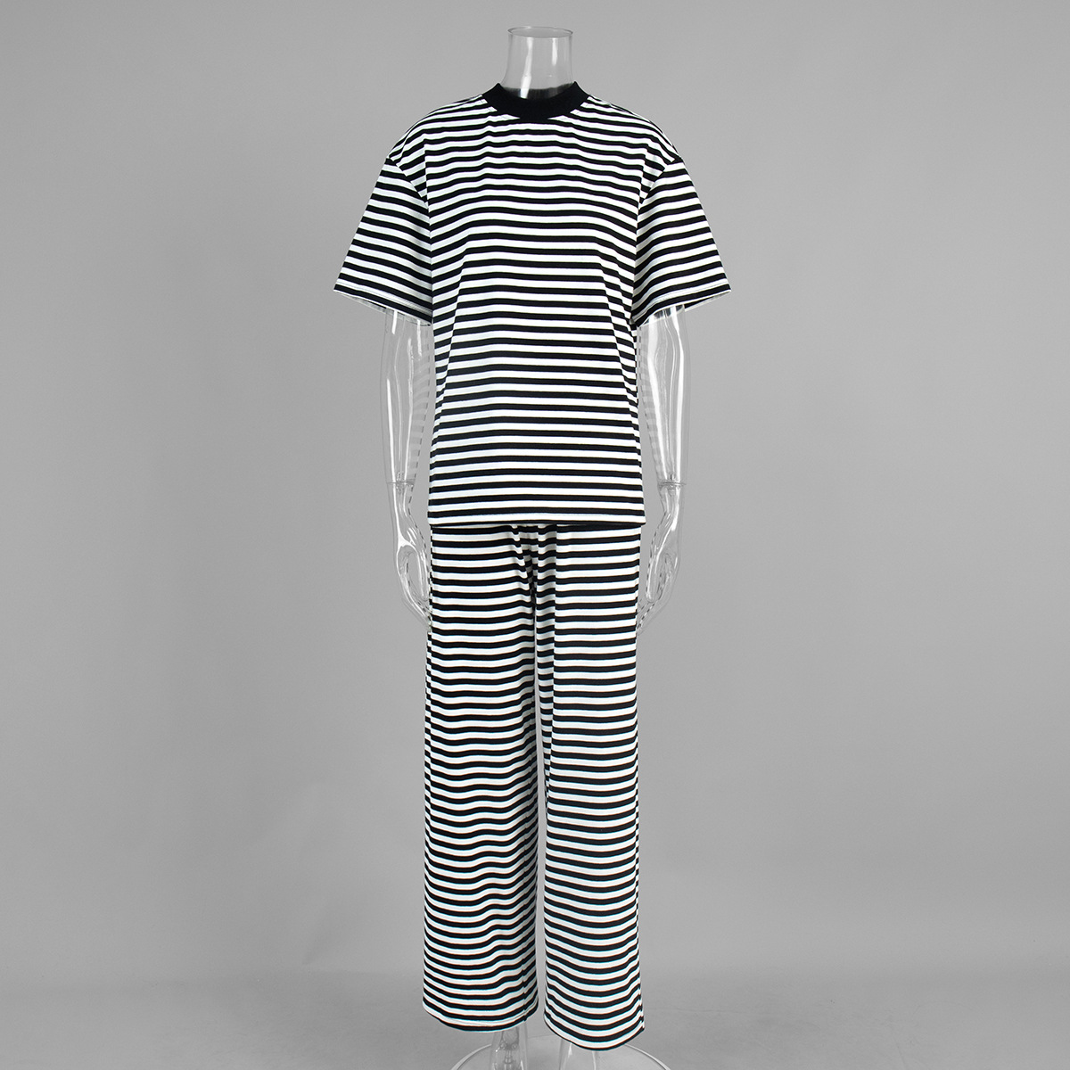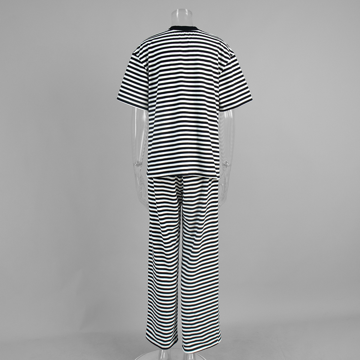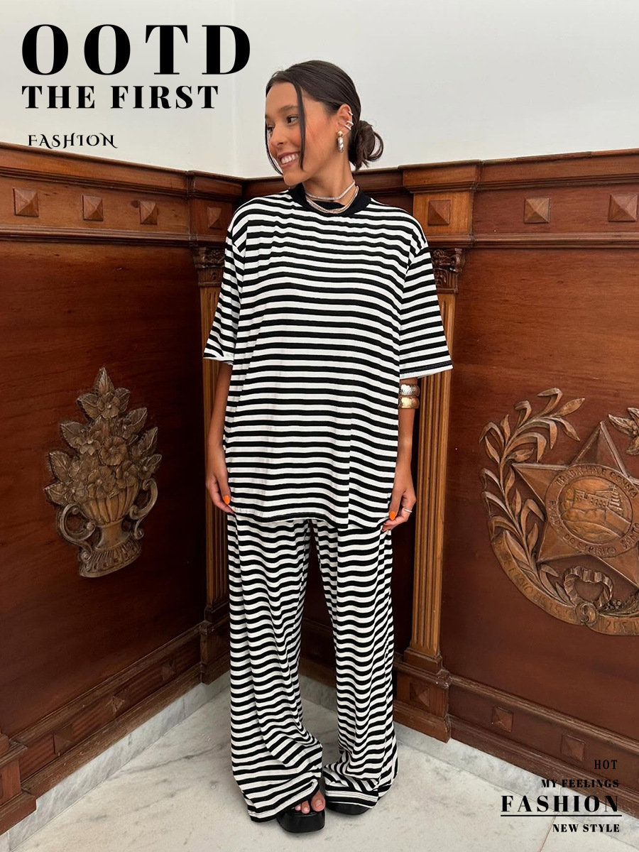 Striped Short Sleeved Long Pants Two-piece Set
