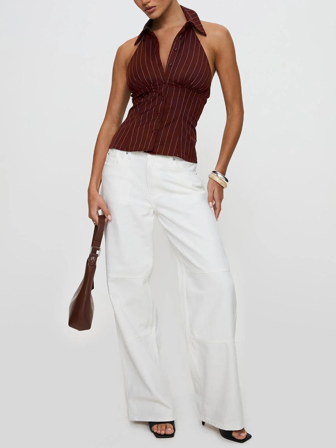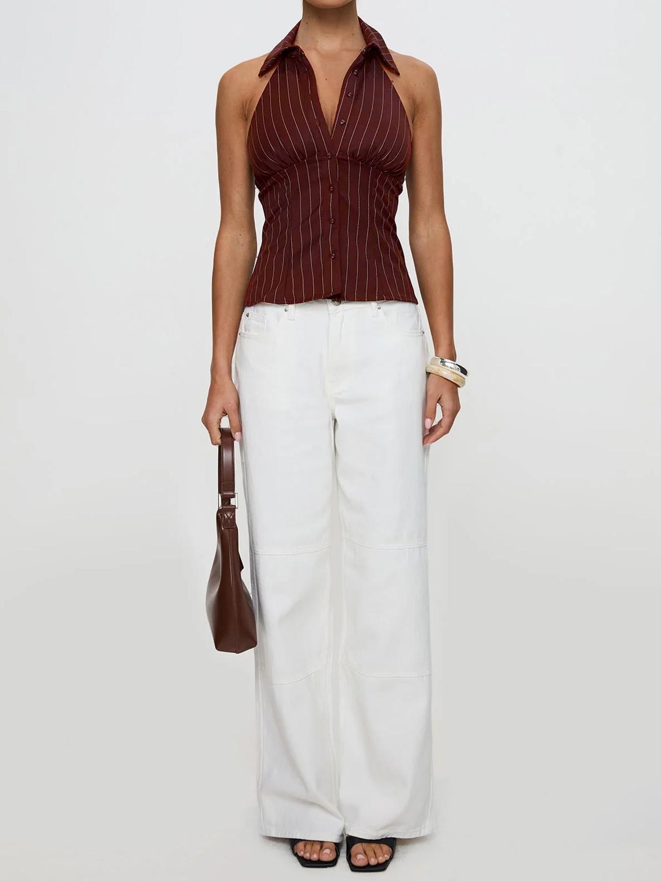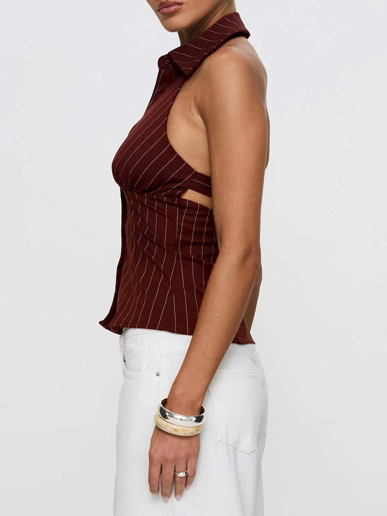 Striped Slim-fit Sleeveless Shirt With Distressed Details