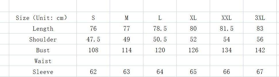 1. Asian sizes are 1 to 2 sizes smaller than European and American people. Choose the larger size if your size between two sizes. Please allow 2-3cm differences due to manual measurement. 2. Please check the size chart carefully before you buy the item, if you don't know how to choose size, please contact our customer service. 3.As you know, the different computers display colors differently, the color of the actual item may vary slightly from the following images.