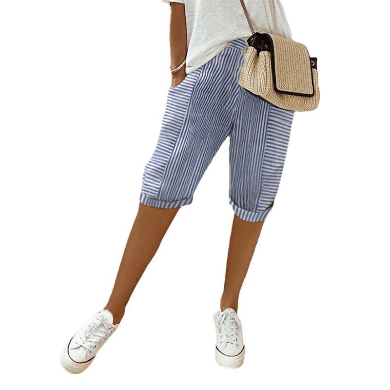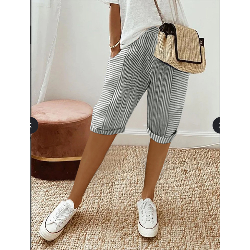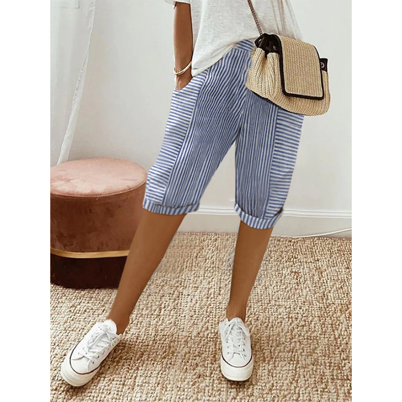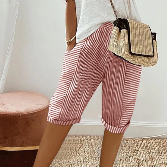 Striped Stitching Loose Casual Cropped Pants