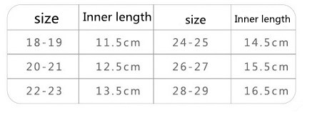 Children's socks size: 18-19 (11.5cm), 20-21 (12.5cm), 22-23 (13.5cm), 24-25 (14.5cm), 26-27 (15.5cm)