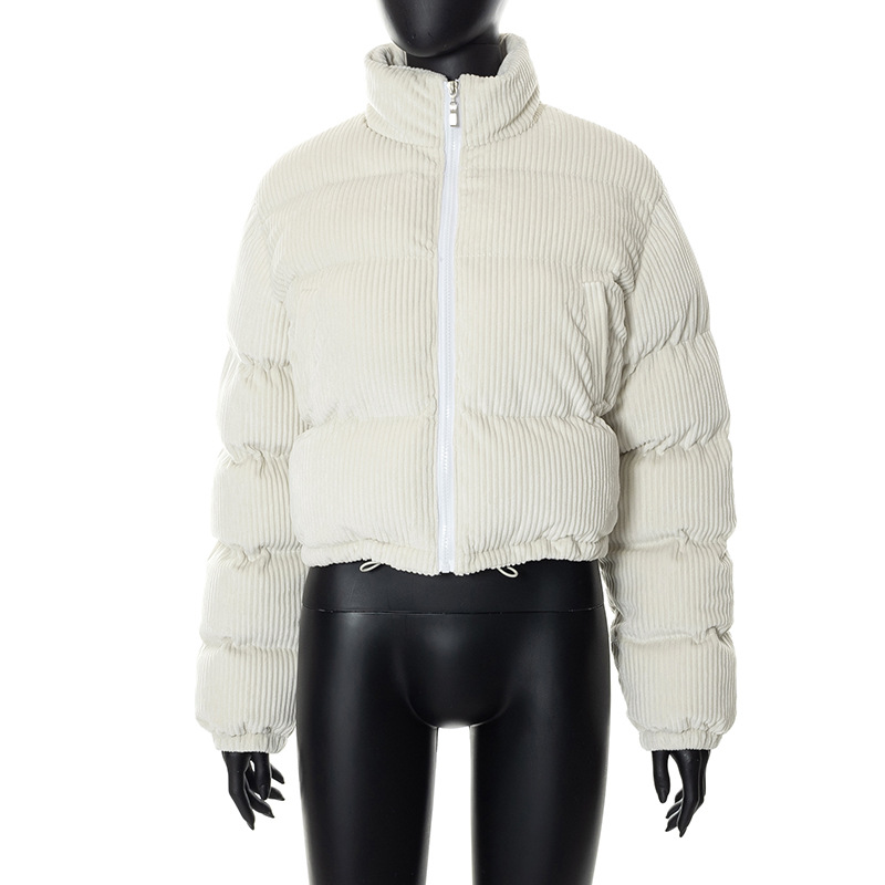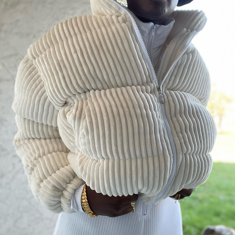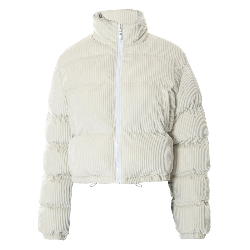 Striped Turtleneck Long Sleeve Cardigan Pocket Slim Fashion Slim-fit Cotton-padded Jacket