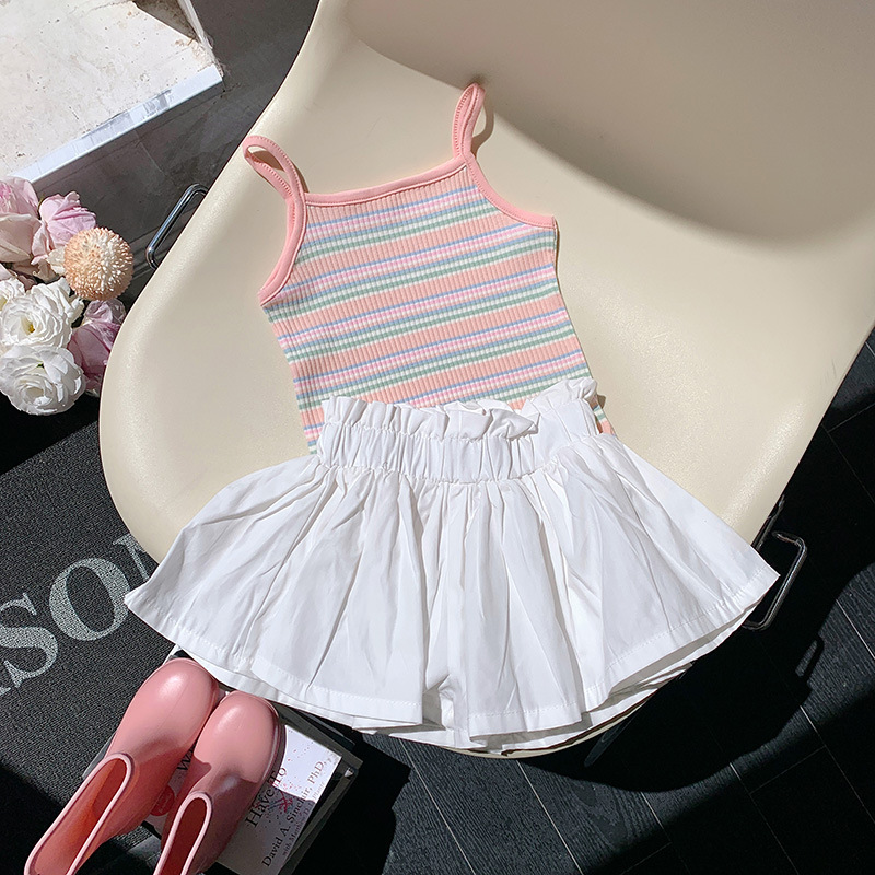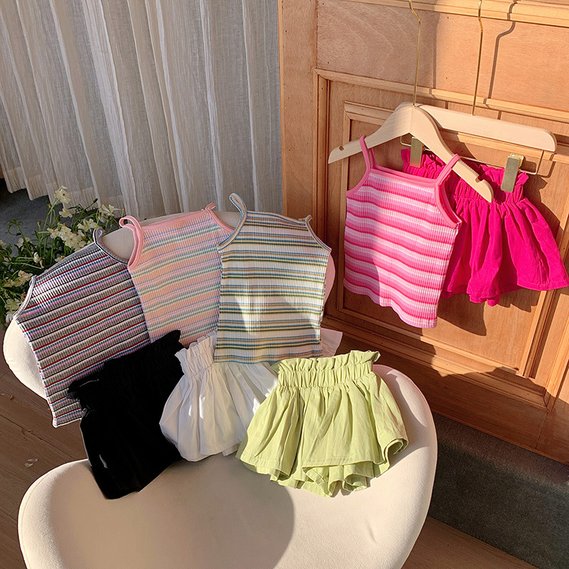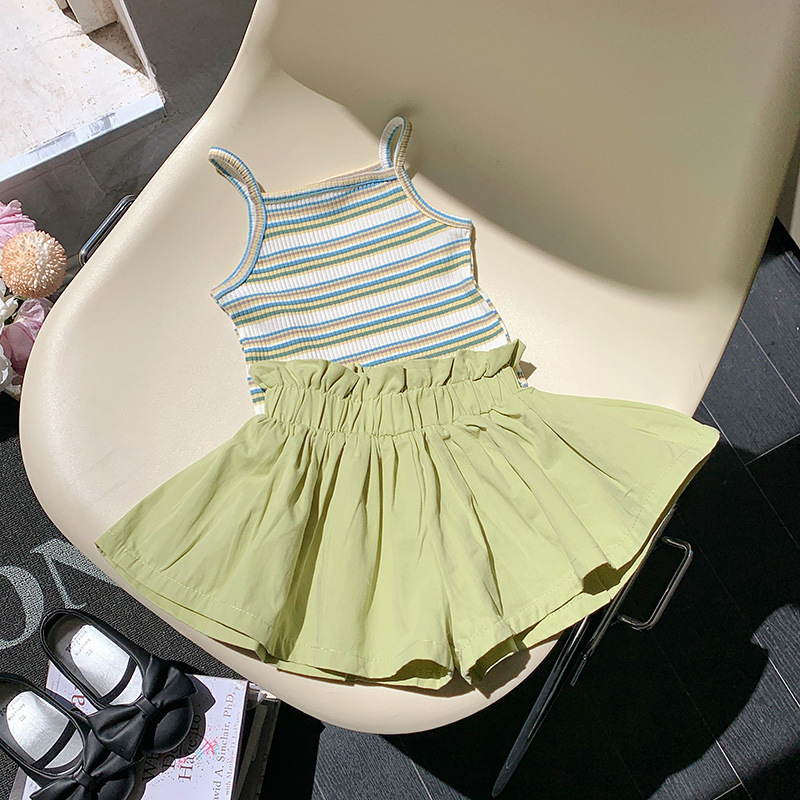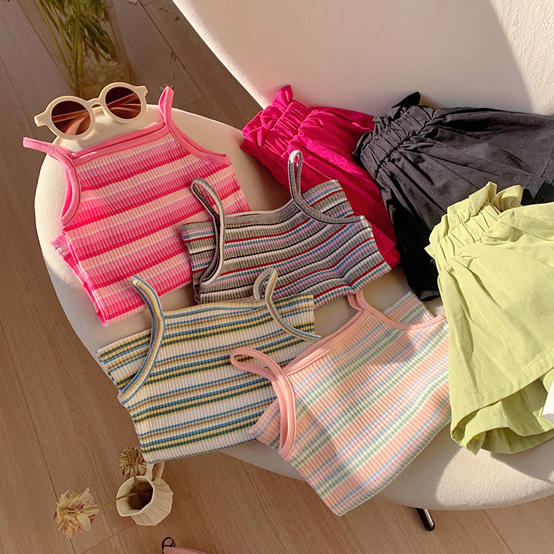 Striped Vest Bud-waisted Shorts Suit