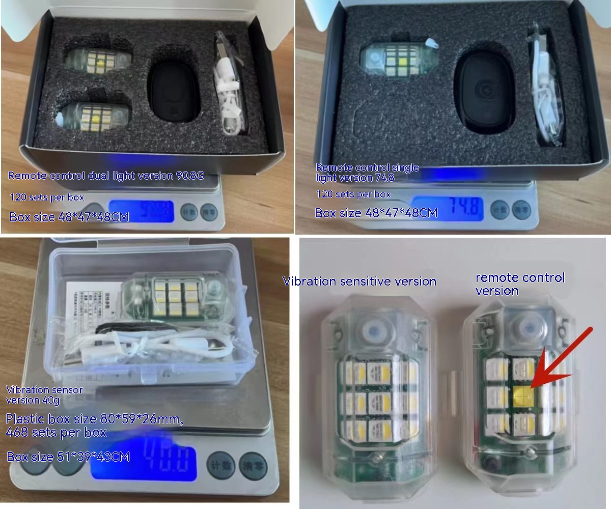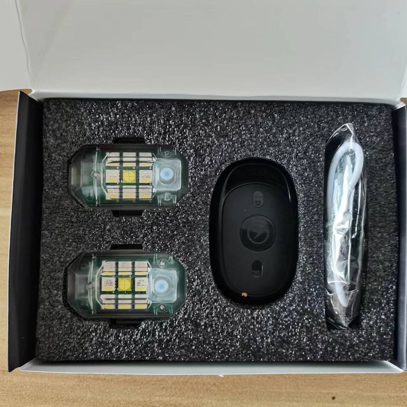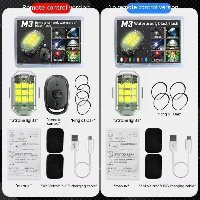 Explosive flashing light x4pcs+remote control x1pc+manual x1pc+warning sticker x1pc+rubber band x1pc+charging cable x1pc